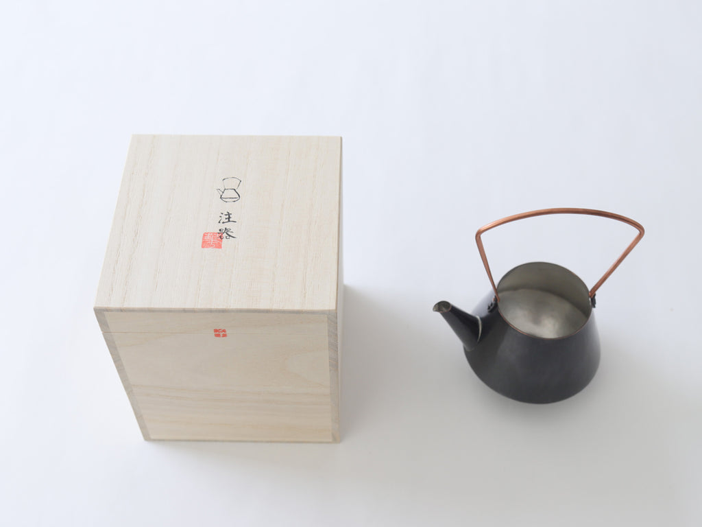 銅に硫化着色を施すことにより、燻銀のような色味となった特別感を感じる注器。