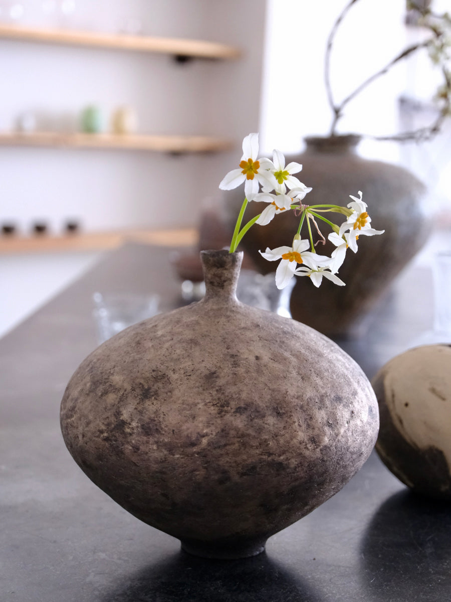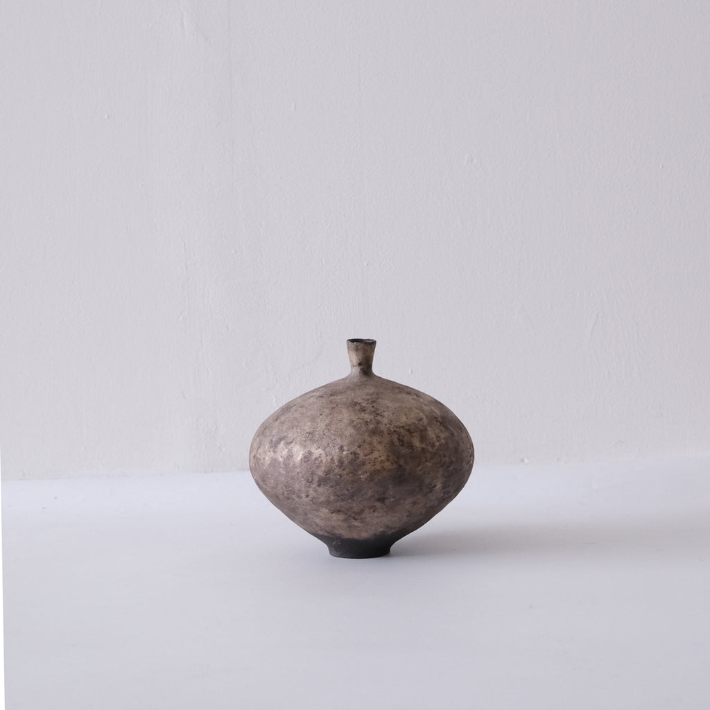 細い口とふっくら膨らんだ形が印象的です。