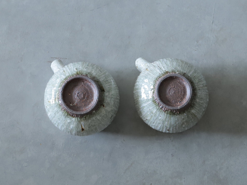 水飴のような透明感のあるとろりとした釉と細かく刻まれたしのぎ模様が交錯するガラス釉