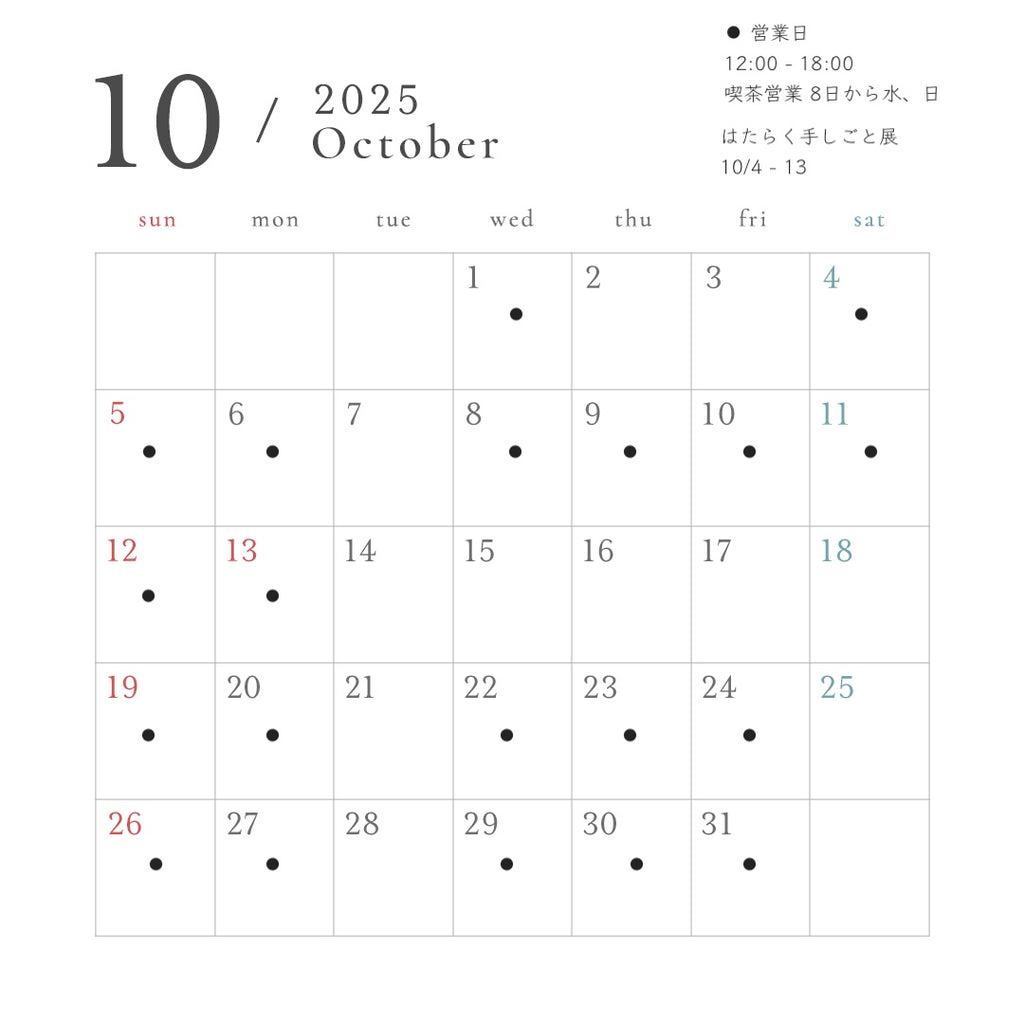 10/14-18はオンラインショップ準備と展示入替のため休業します