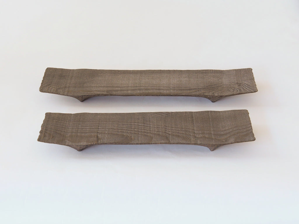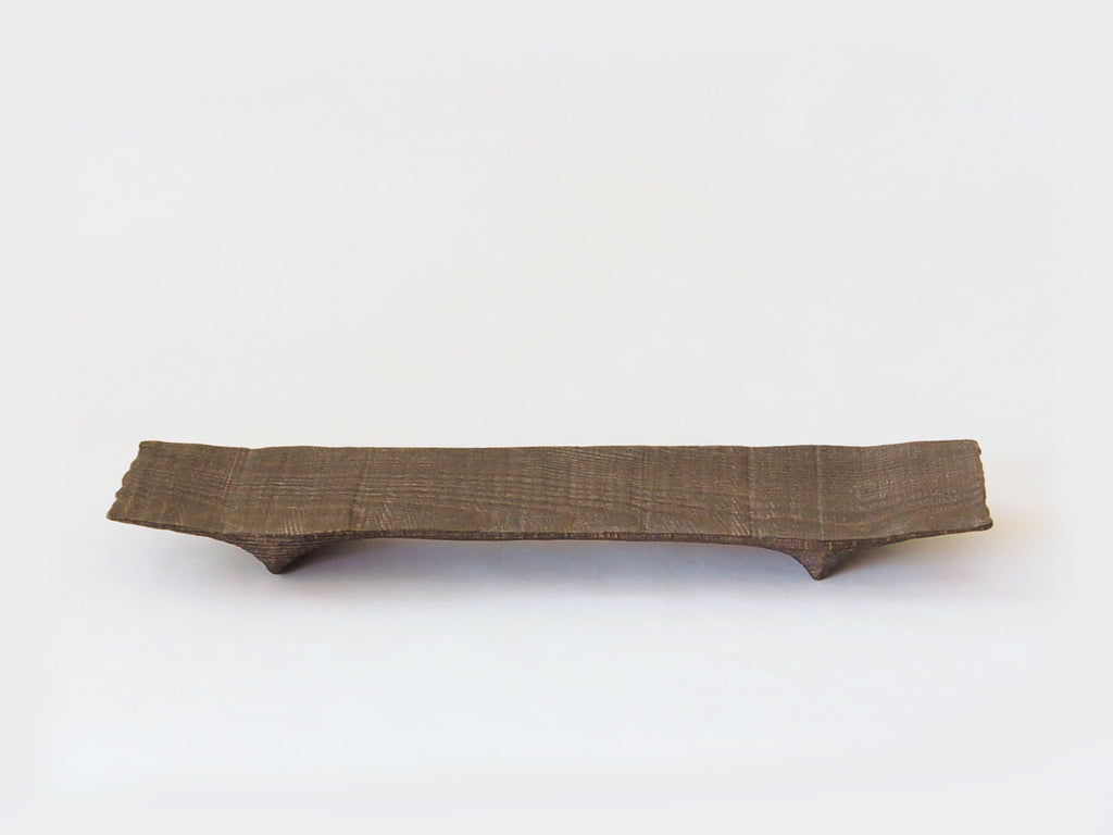 髙橋関丞 脚付板皿 栗渋 ガラスコーティング M,S