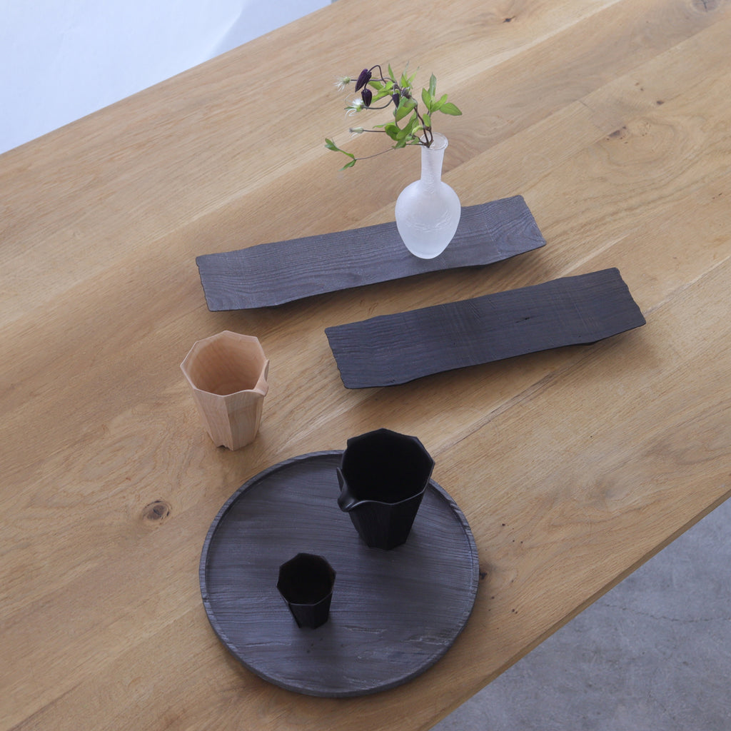 <材質> 木材(サクラ)、栗渋染色 ガラスコーティング