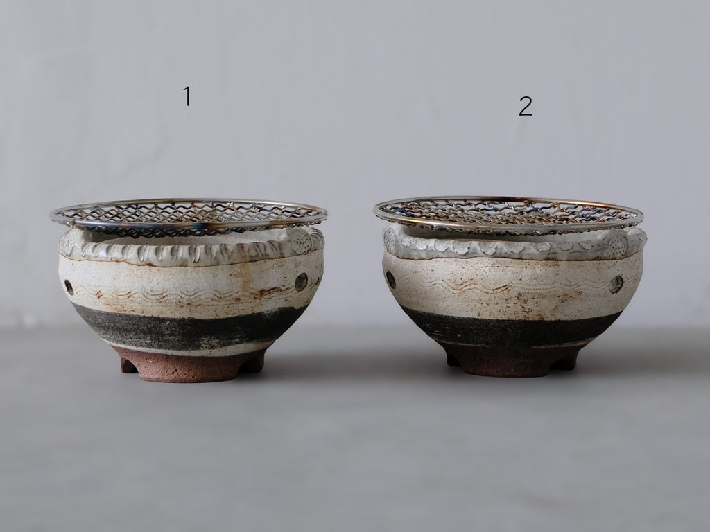 <材質> 陶器、中の炭をいれる容器のみ耐火土、ステンレス(網)