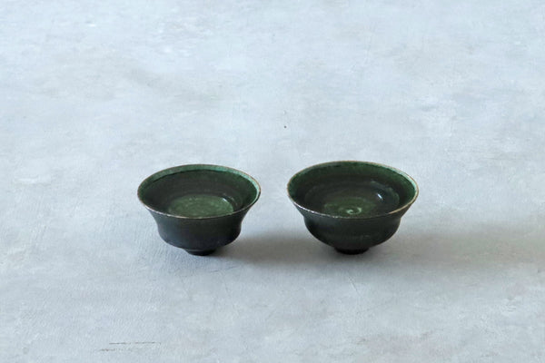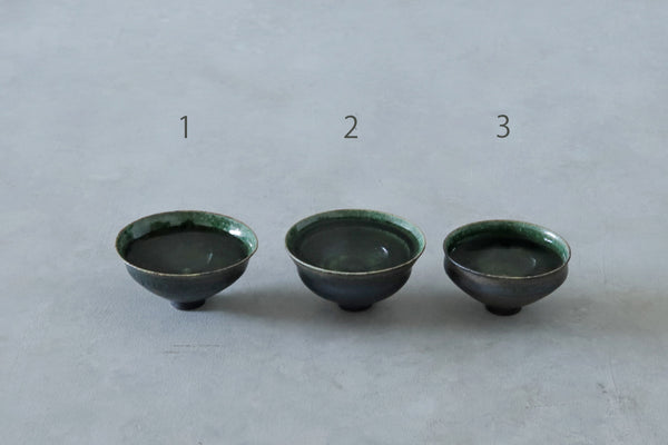 艶やかな緑と外側のメタリックな黒が印象的な織部をはじめ、