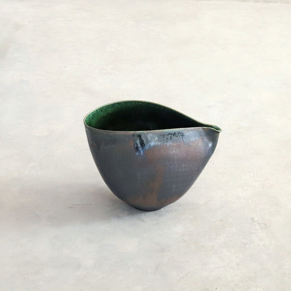 外側も内側も鄙びた黒の表情がよい背景となりそうな鉄黒釉