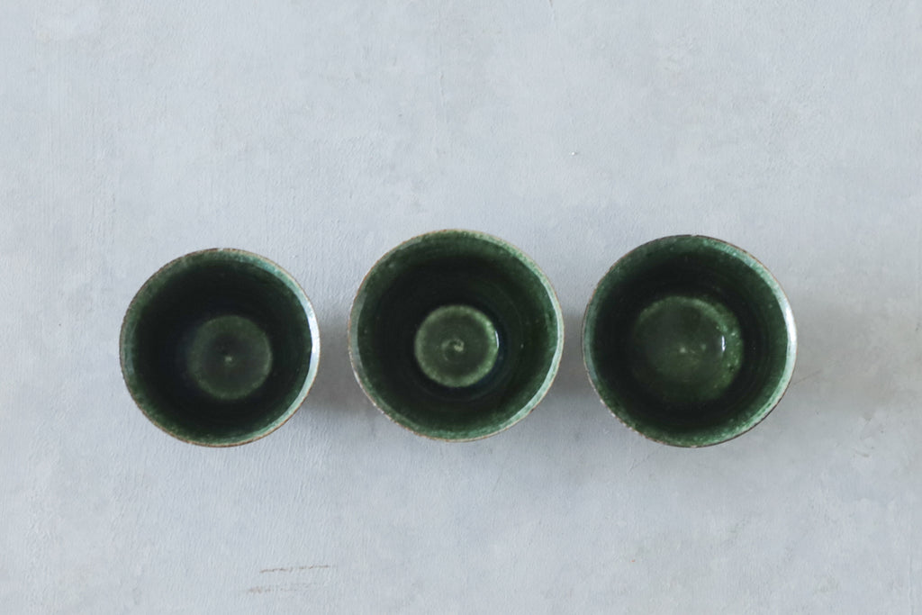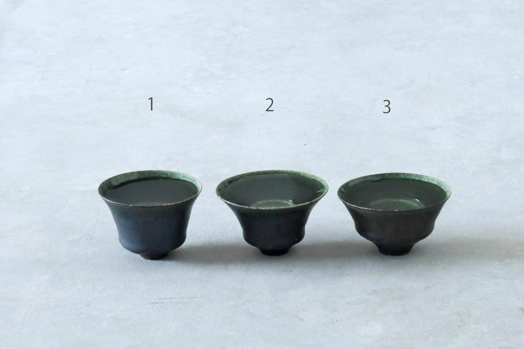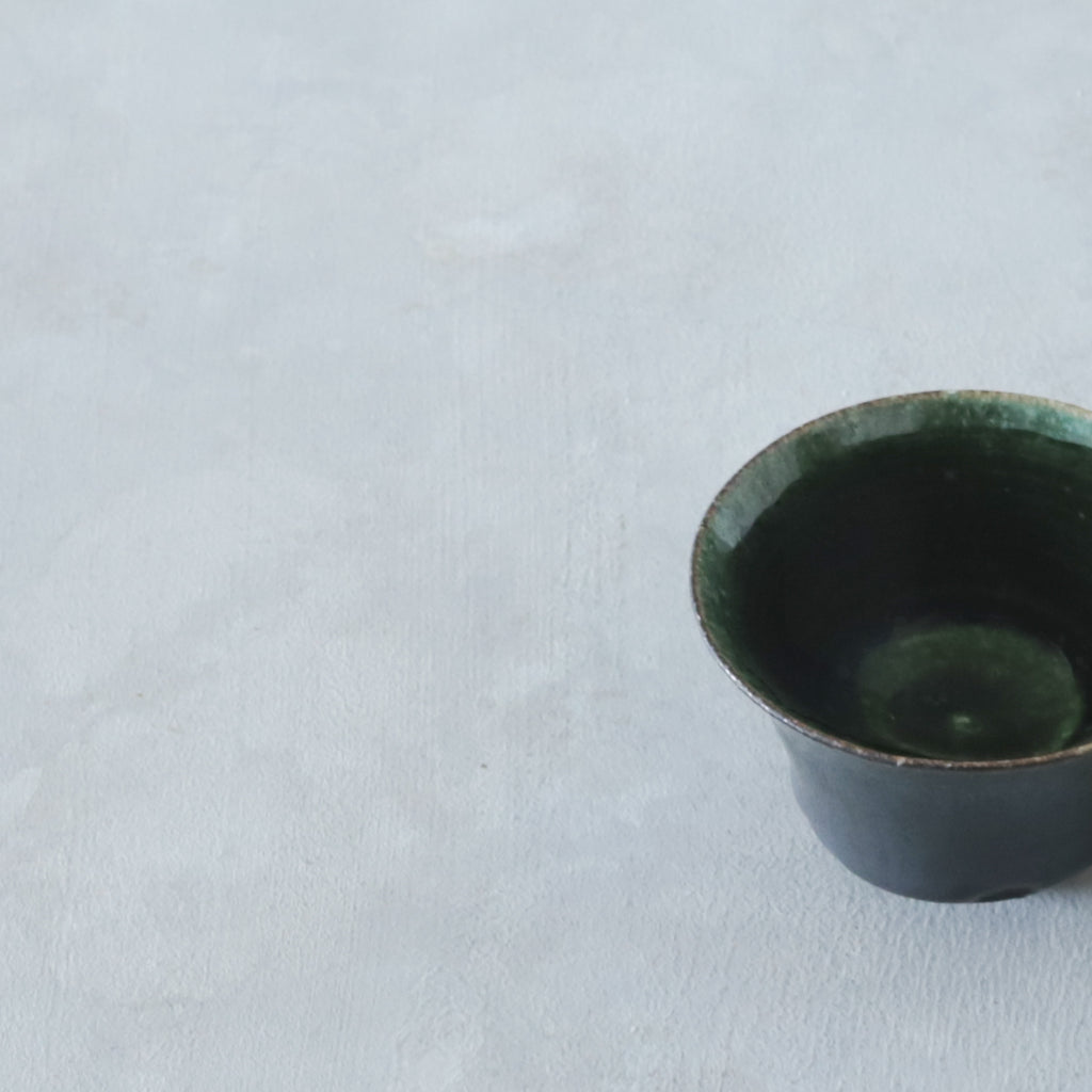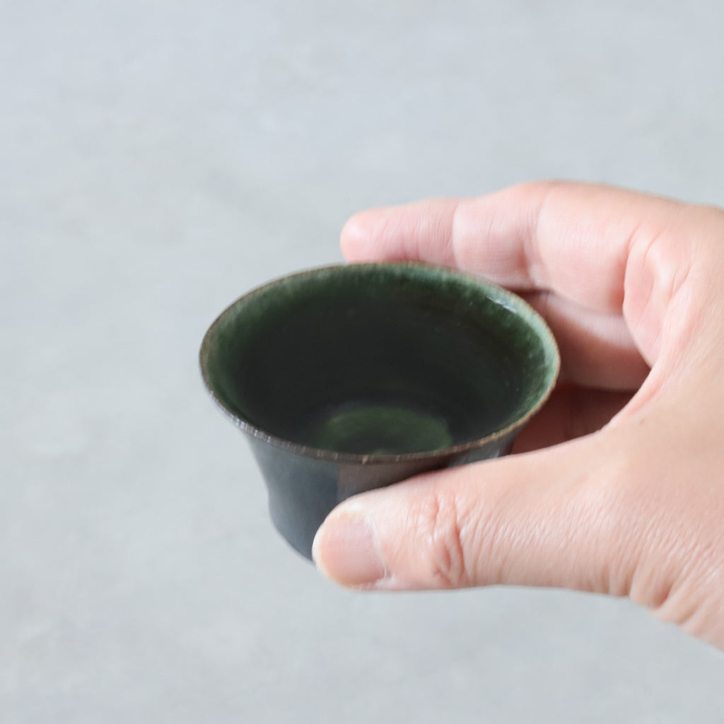艶やかな織部の緑が美しいぐいのみ。