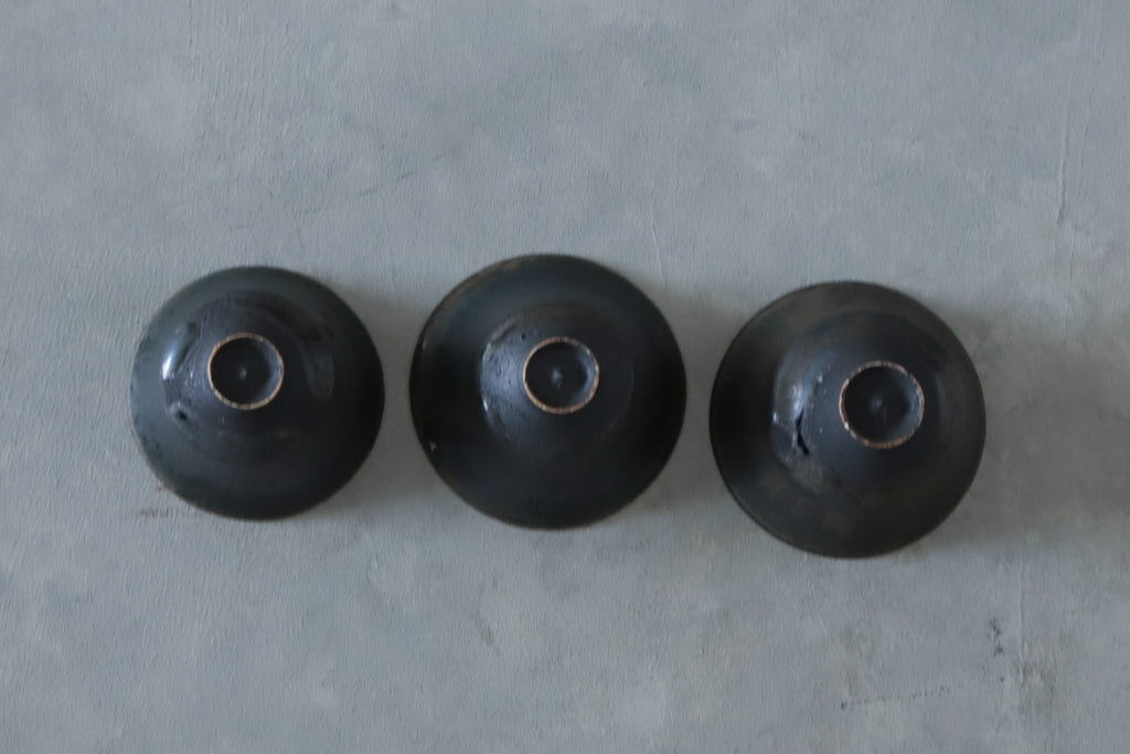 外側のみ掛けられた黒釉は、うつわの印象を引き締めるとともに、独特の趣き深い表情をつくりだしています。