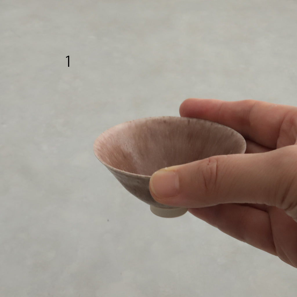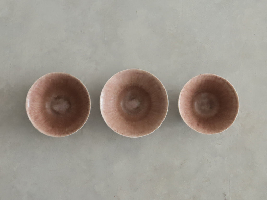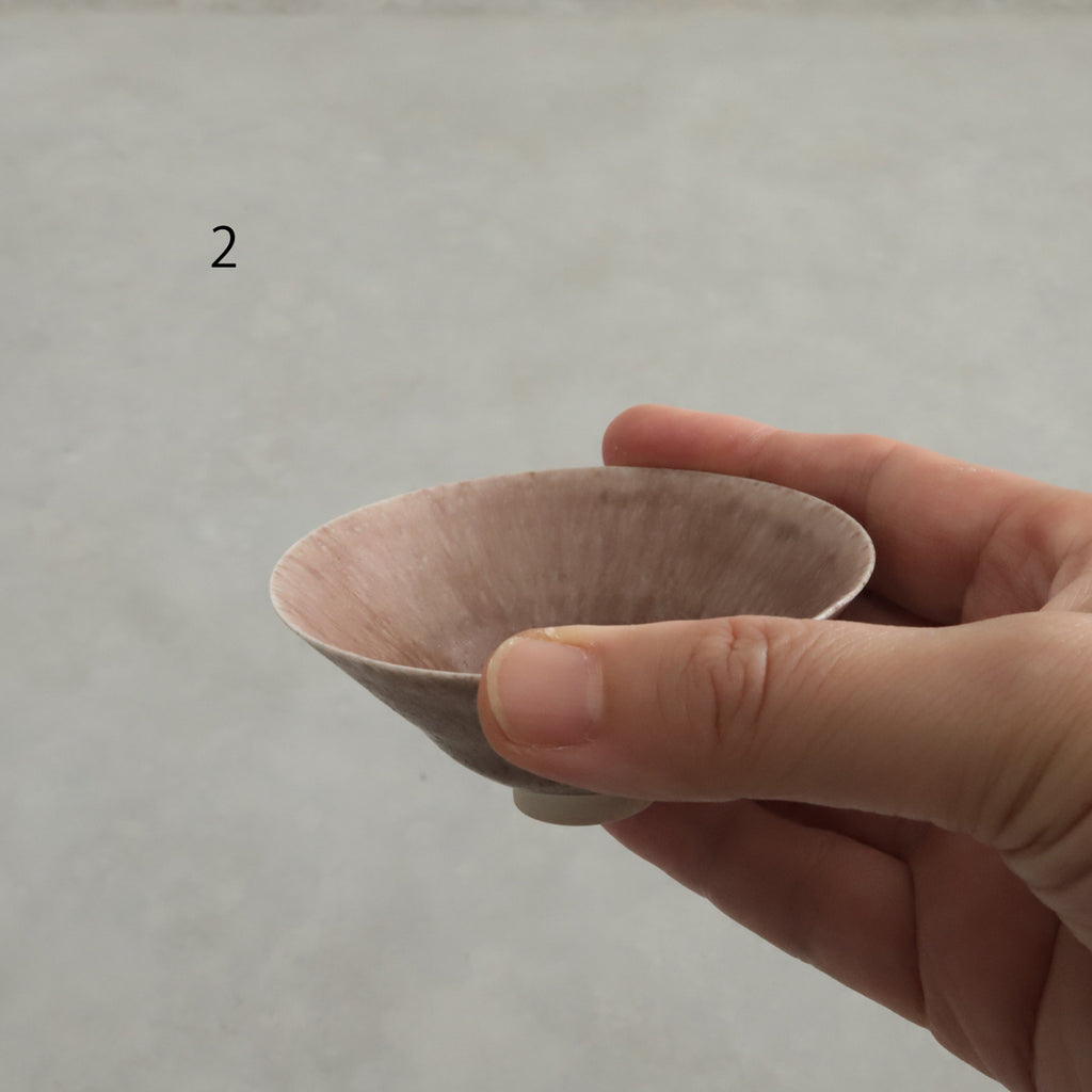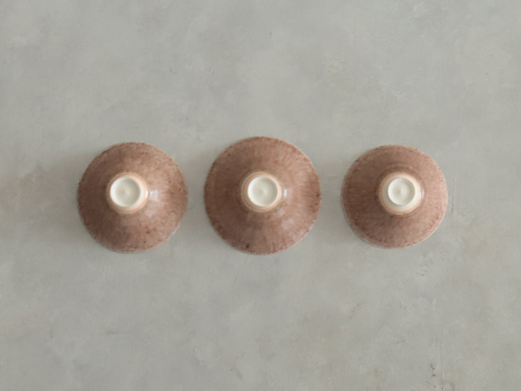 あずき釉と名付けられた白と小豆色が細かなまだら模様となっているうつわ。