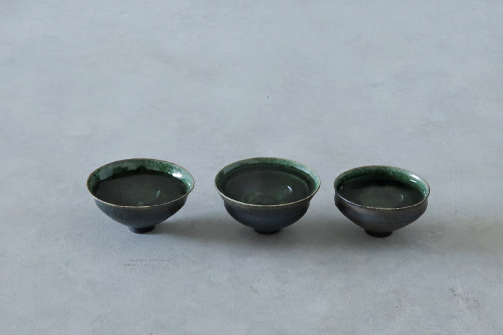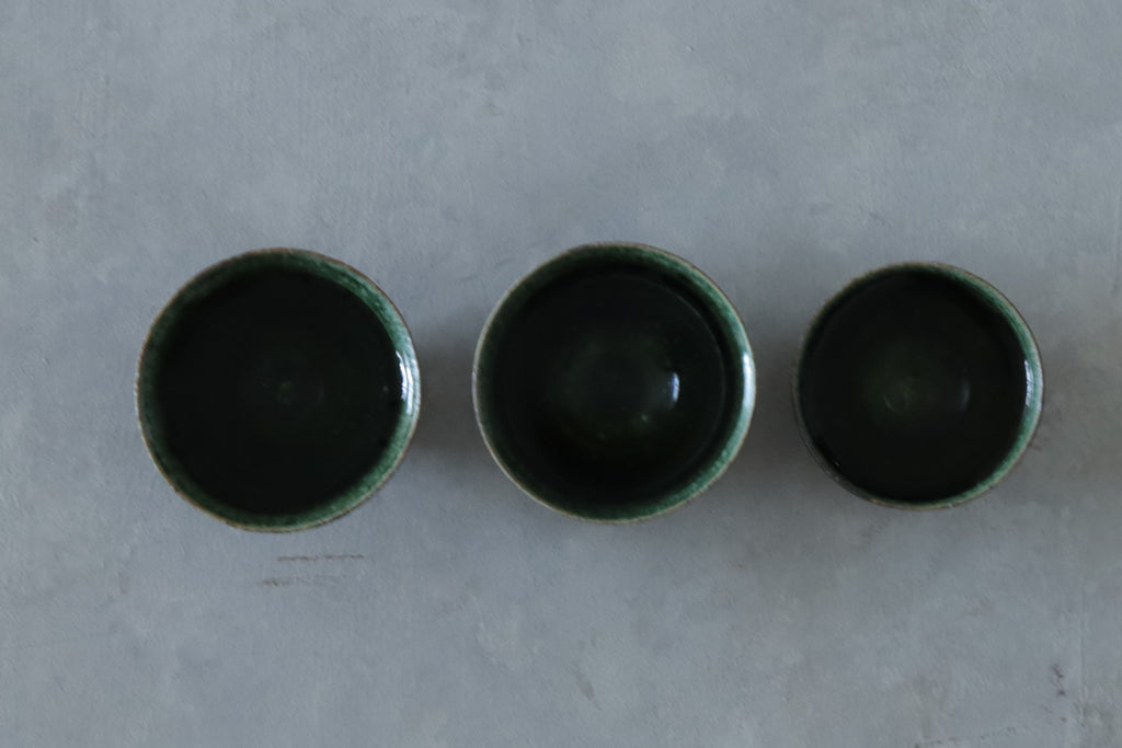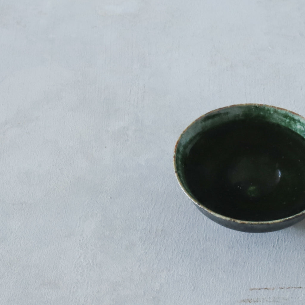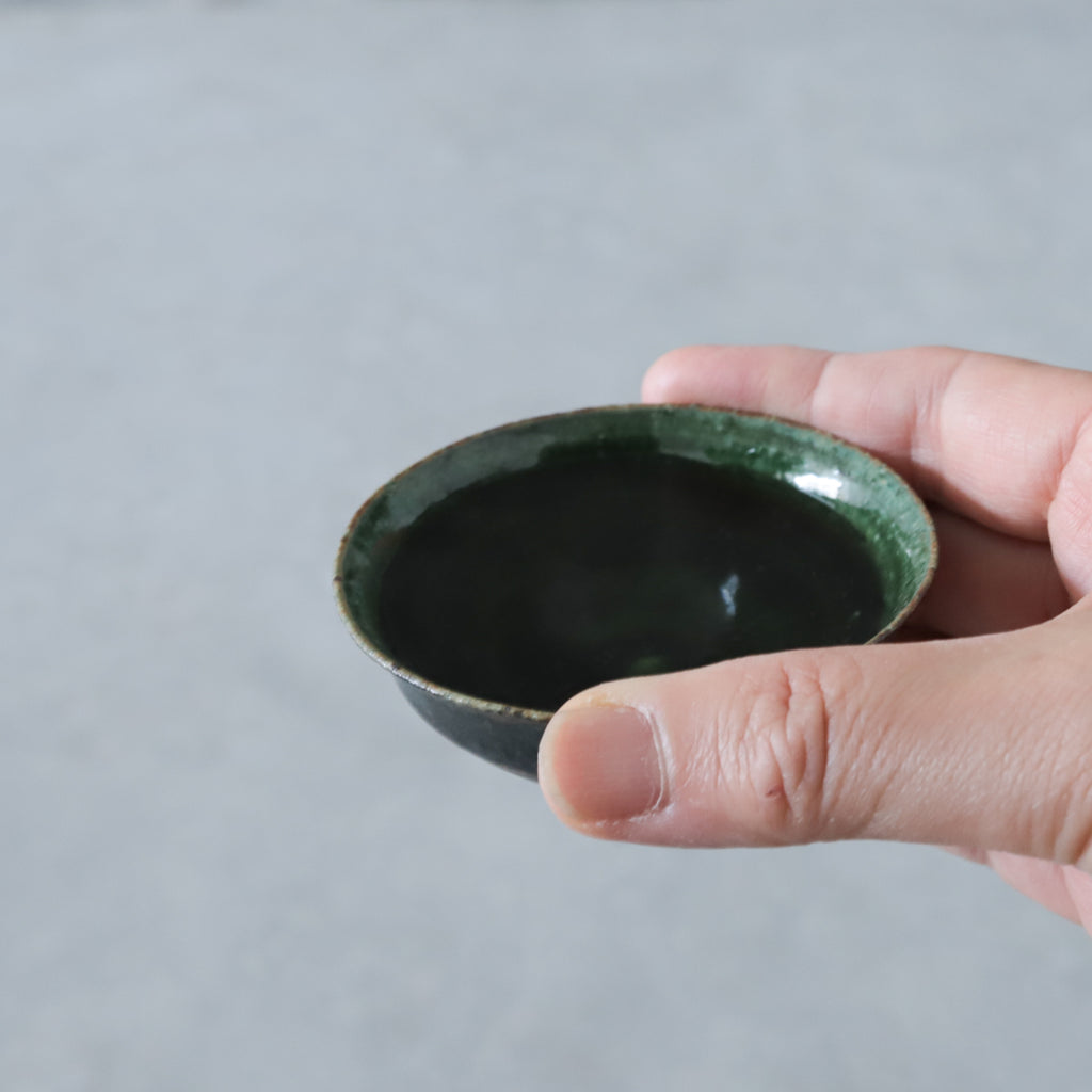 艶やかな織部の緑が美しいぐいのみ。