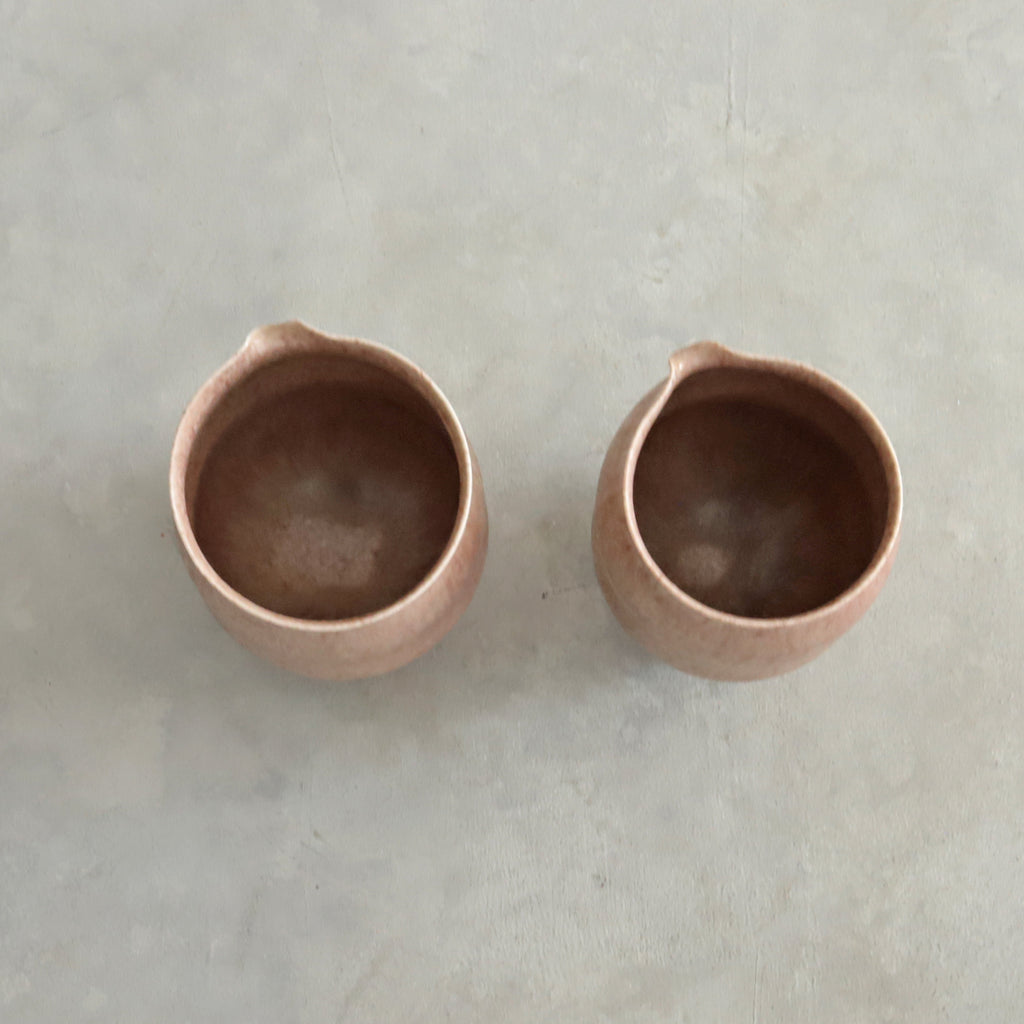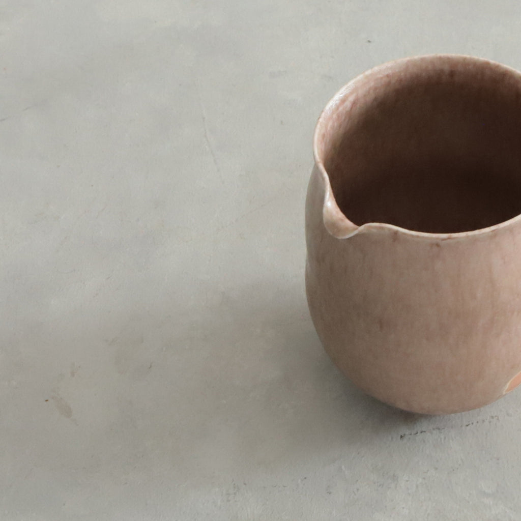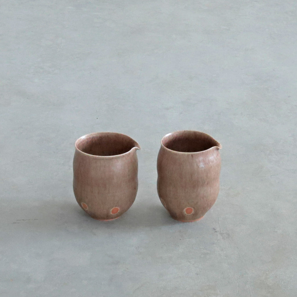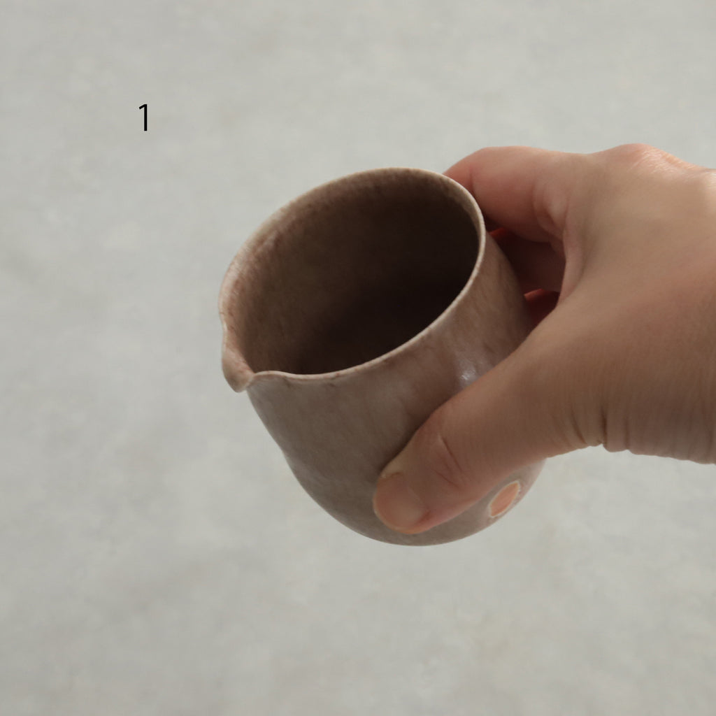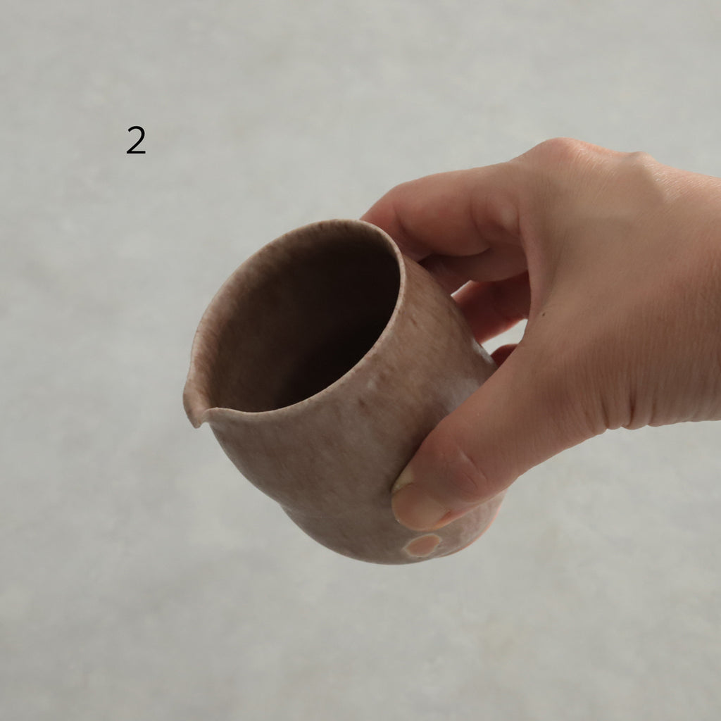 あずき釉と名付けられた白と小豆色が細かなまだら模様となっているうつわ。