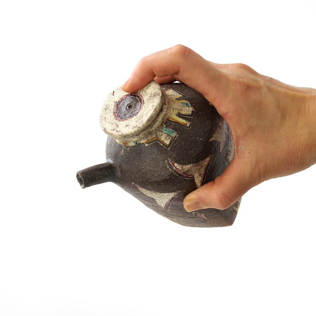蓋は、角度がつくと落ちてしまう可能性がありますので、できたら両手で注いでくださいね。どうしても片手でという方は、人差し指で押さえていただくなどしていただけたら。