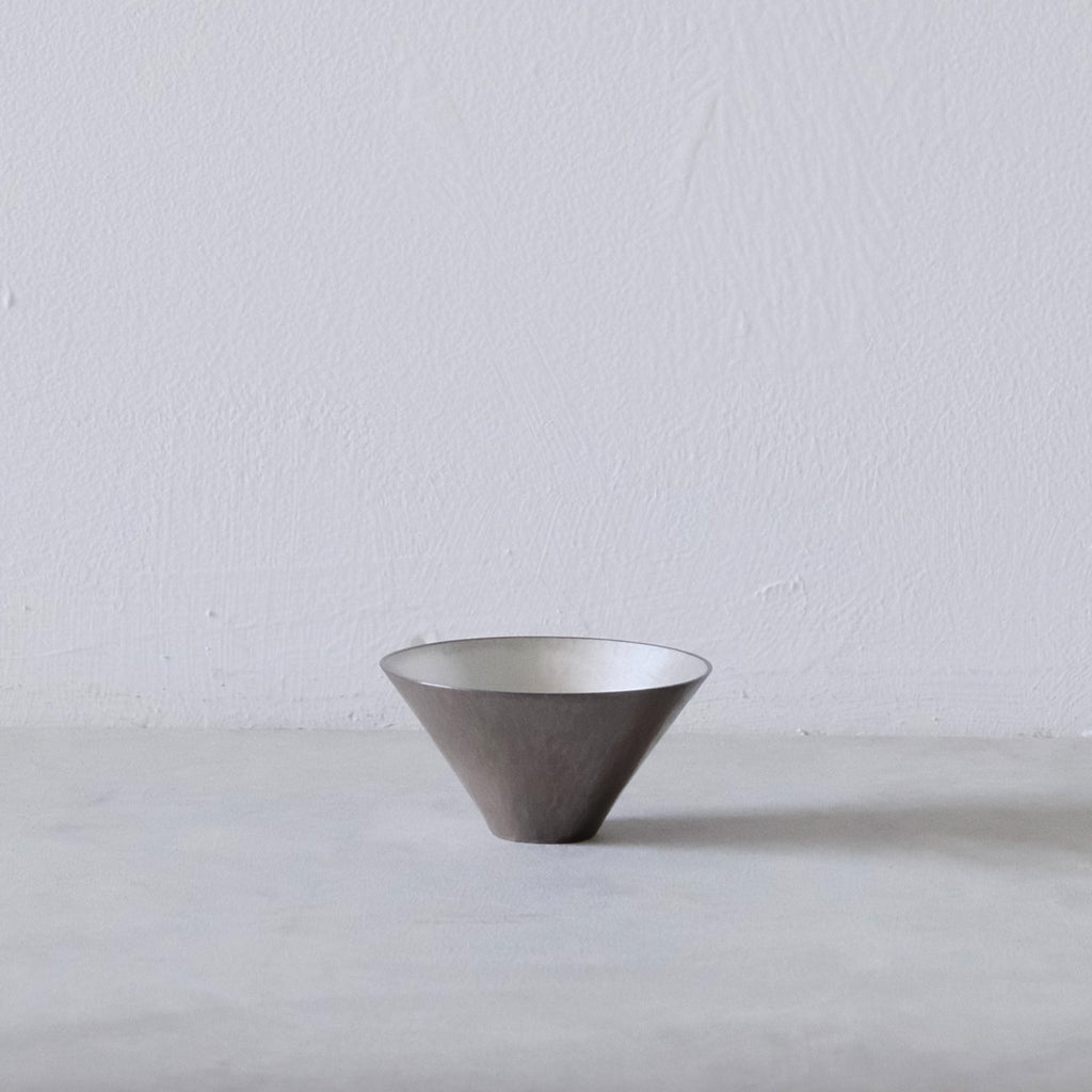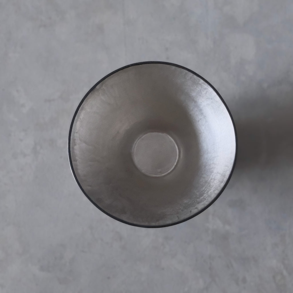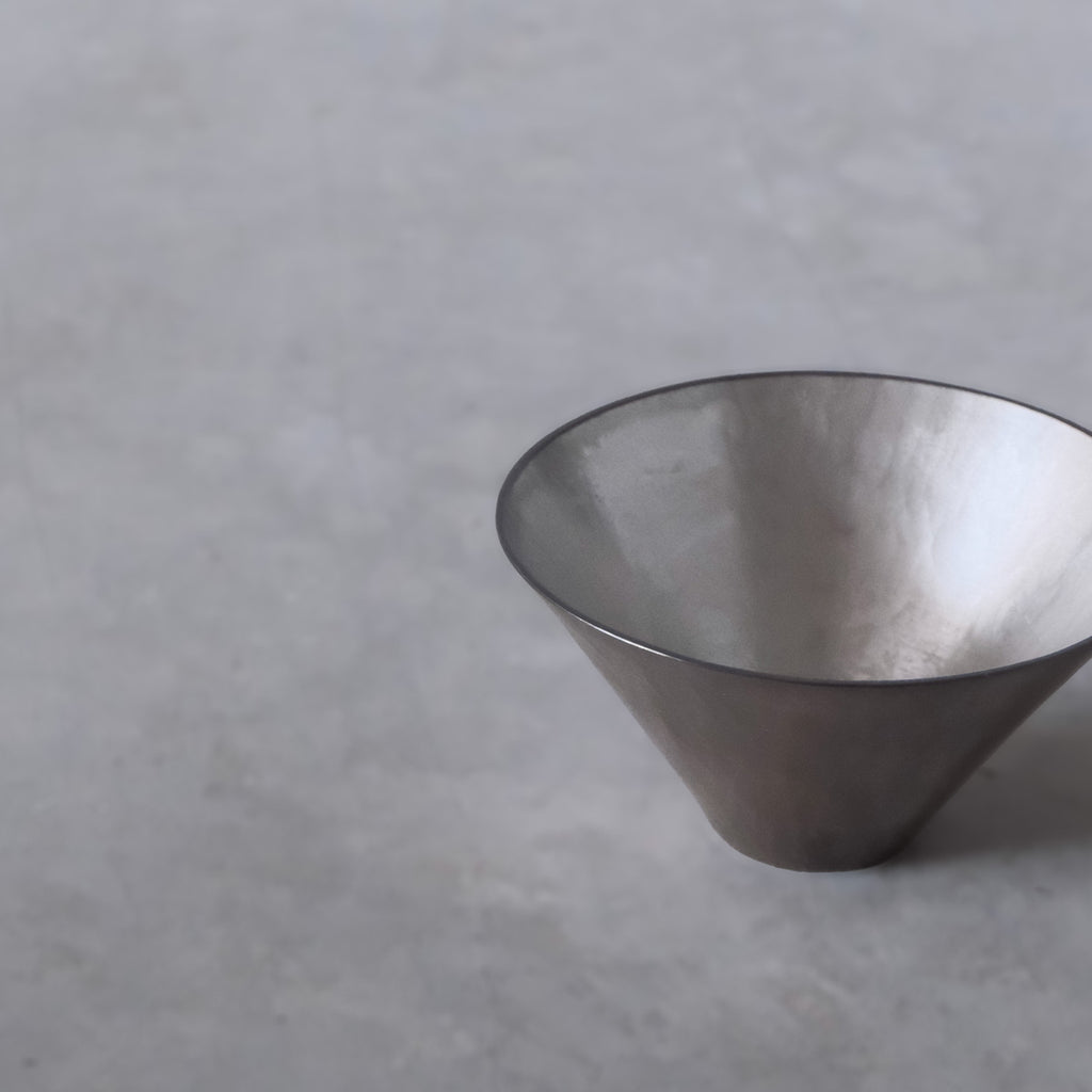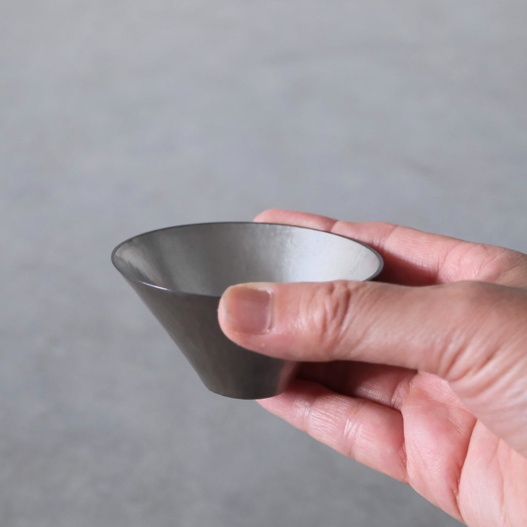 お酒を入れた時にひやっとする金属独特の触感も楽しみながら、その可憐なおちょこ、手中で慈しんでいただけたら幸いです。