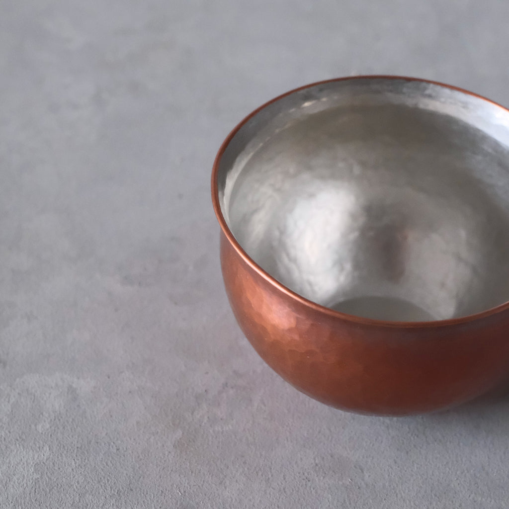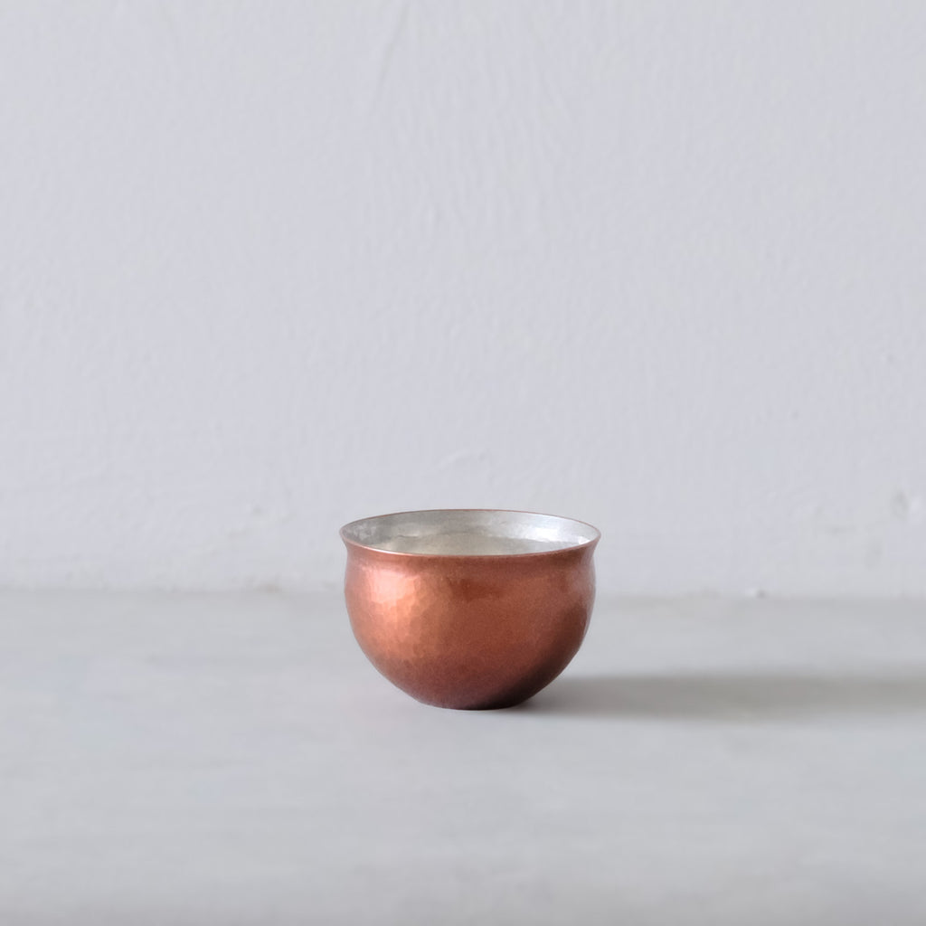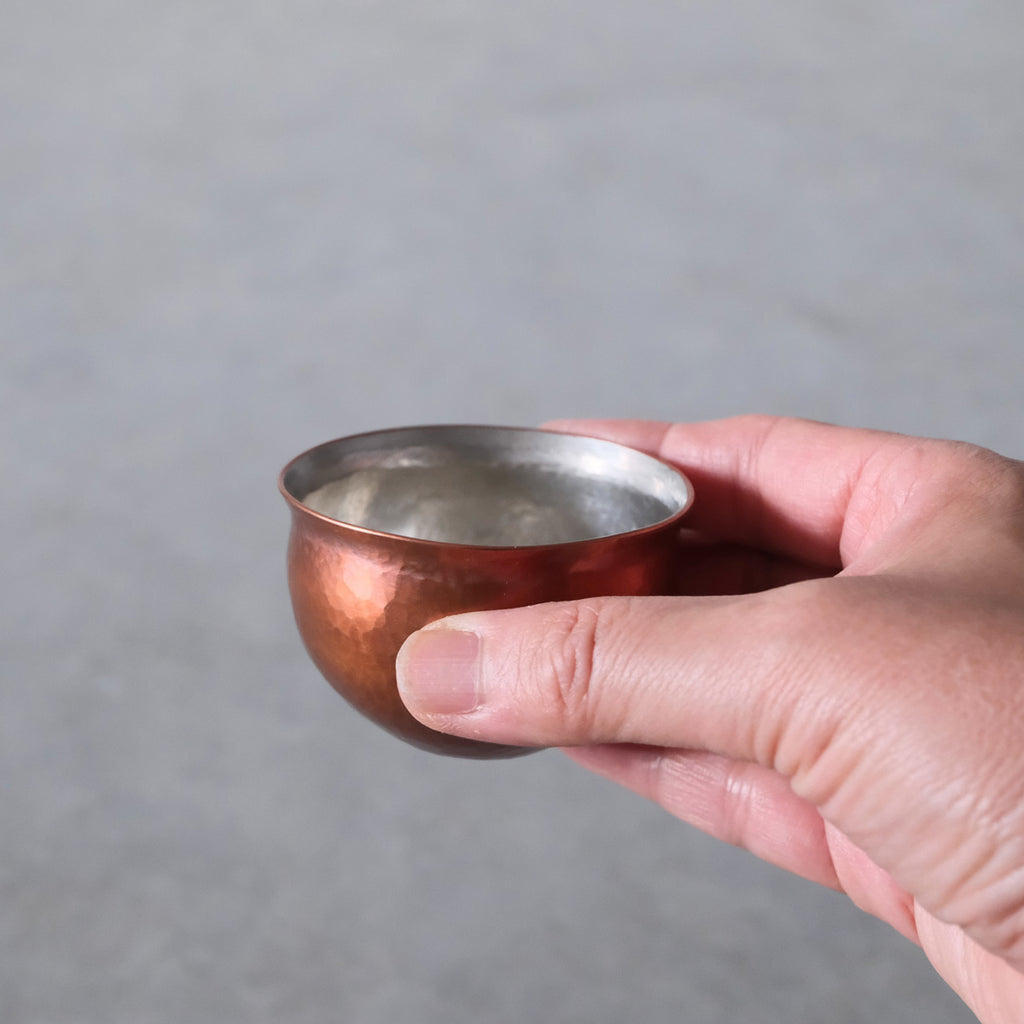 お酒を入れた時にひやっとする金属独特の触感も楽しみながら、その可憐なおちょこ、手中で慈しんでいただけたら幸いです。
