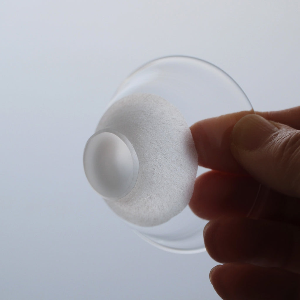下半分はサンドブラストされていて、ホワンと透ける色気ある趣。