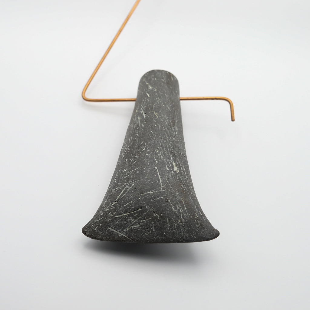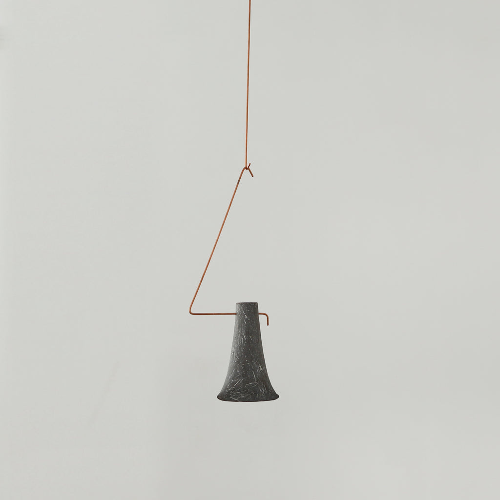 野村さん自ら加工された銅の吊り金具が付いた花入。