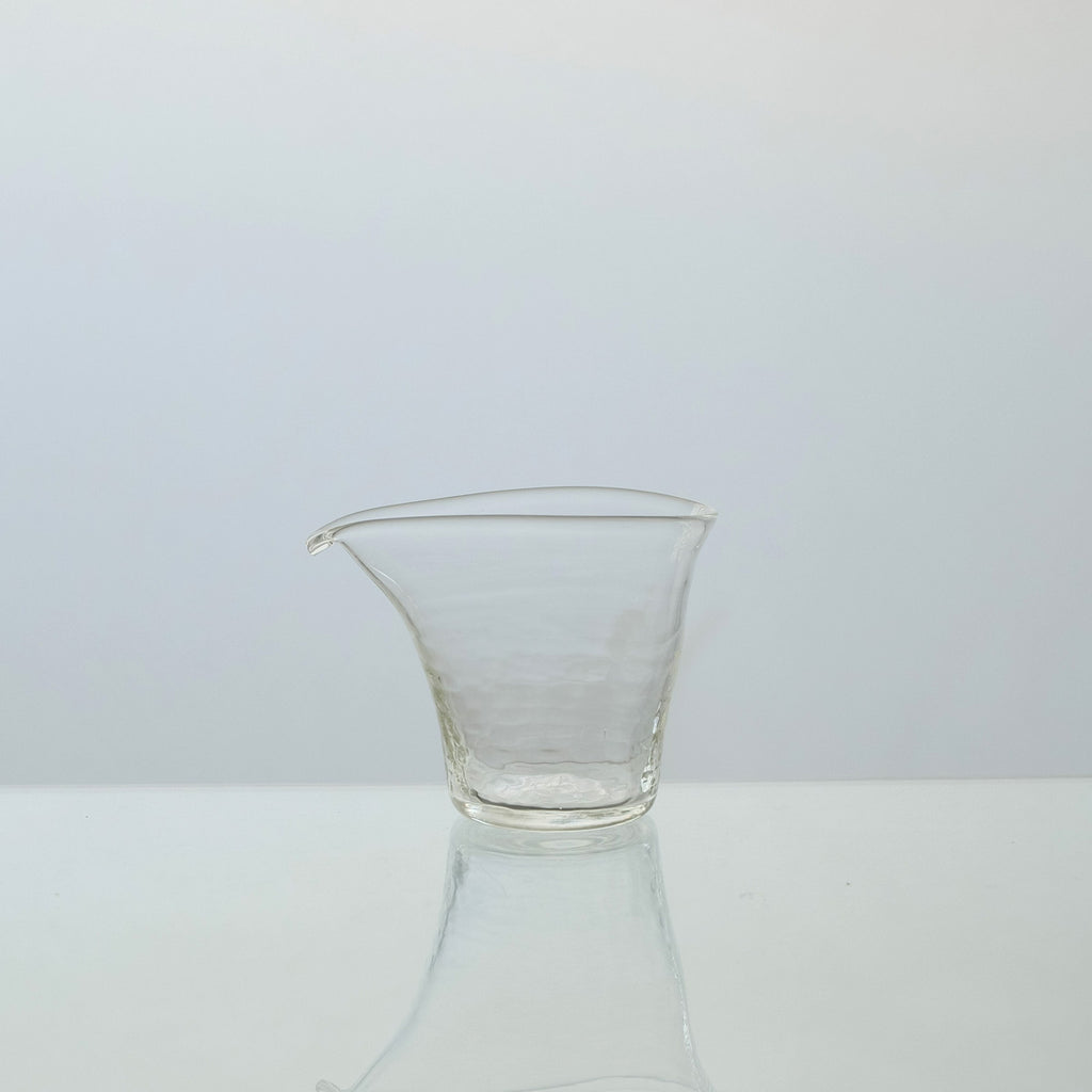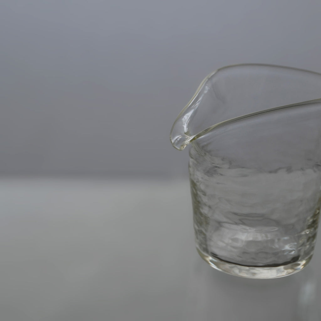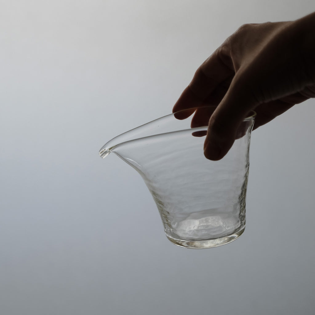 また、自身で硝子の原料を調合し、吹きガラスながら温度変化に耐えうる耐熱のうつわを制作されており、こちらのおっとり伸びやかな茶海も耐熱。