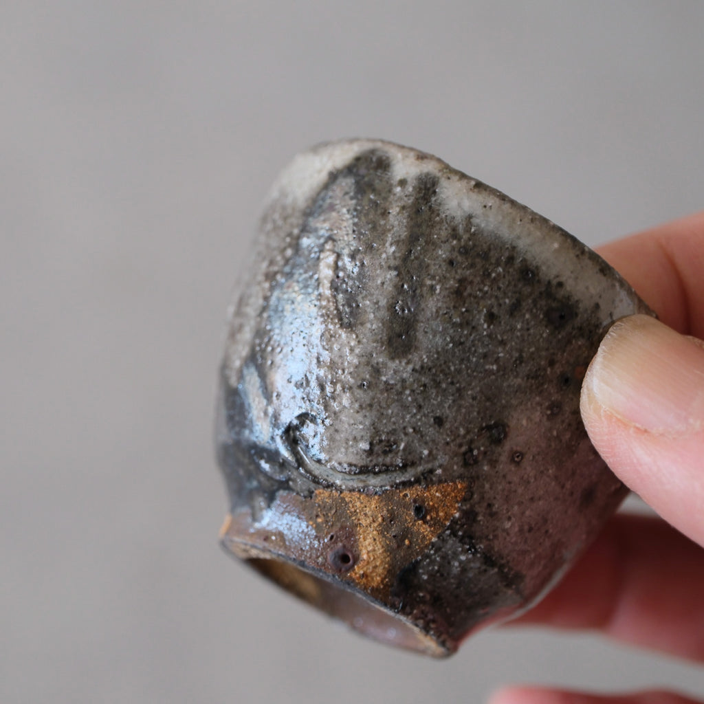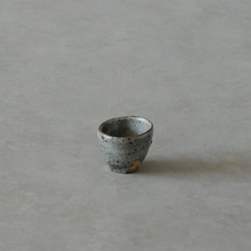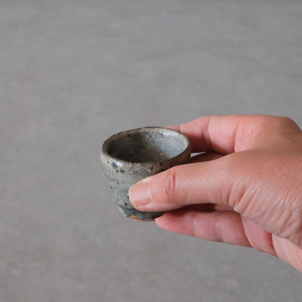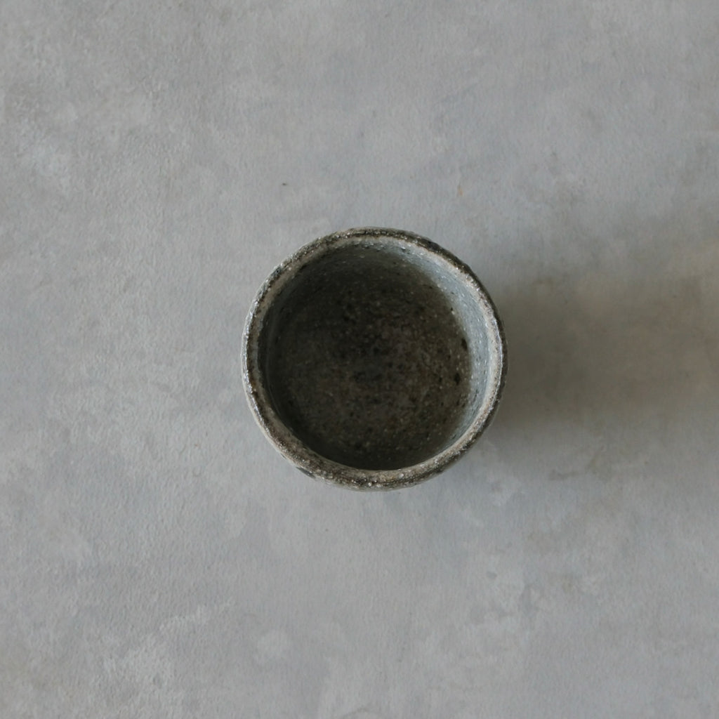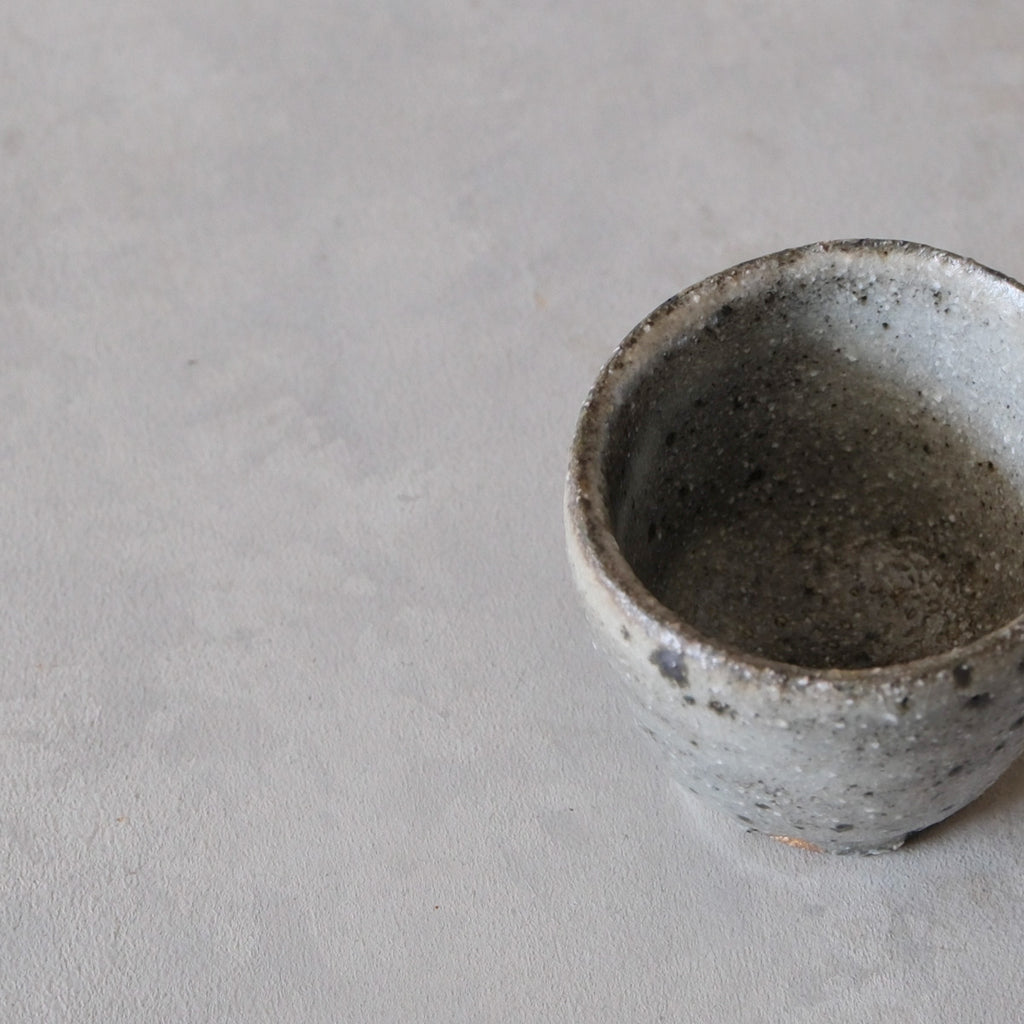 グレーがかった上品な白と淡い変化が印象的な粉引のぐいのみ