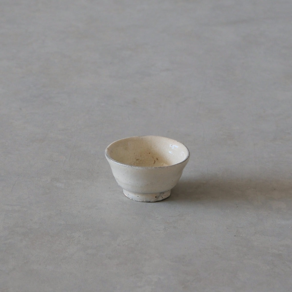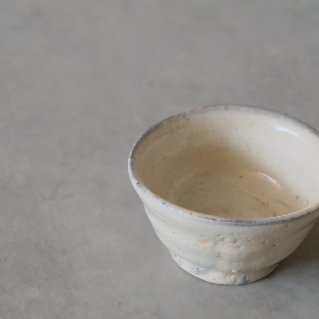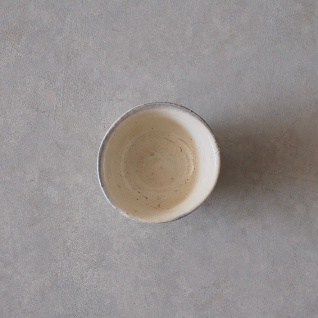 グレーがかった上品な白と淡い変化が印象的な粉引のぐいのみ