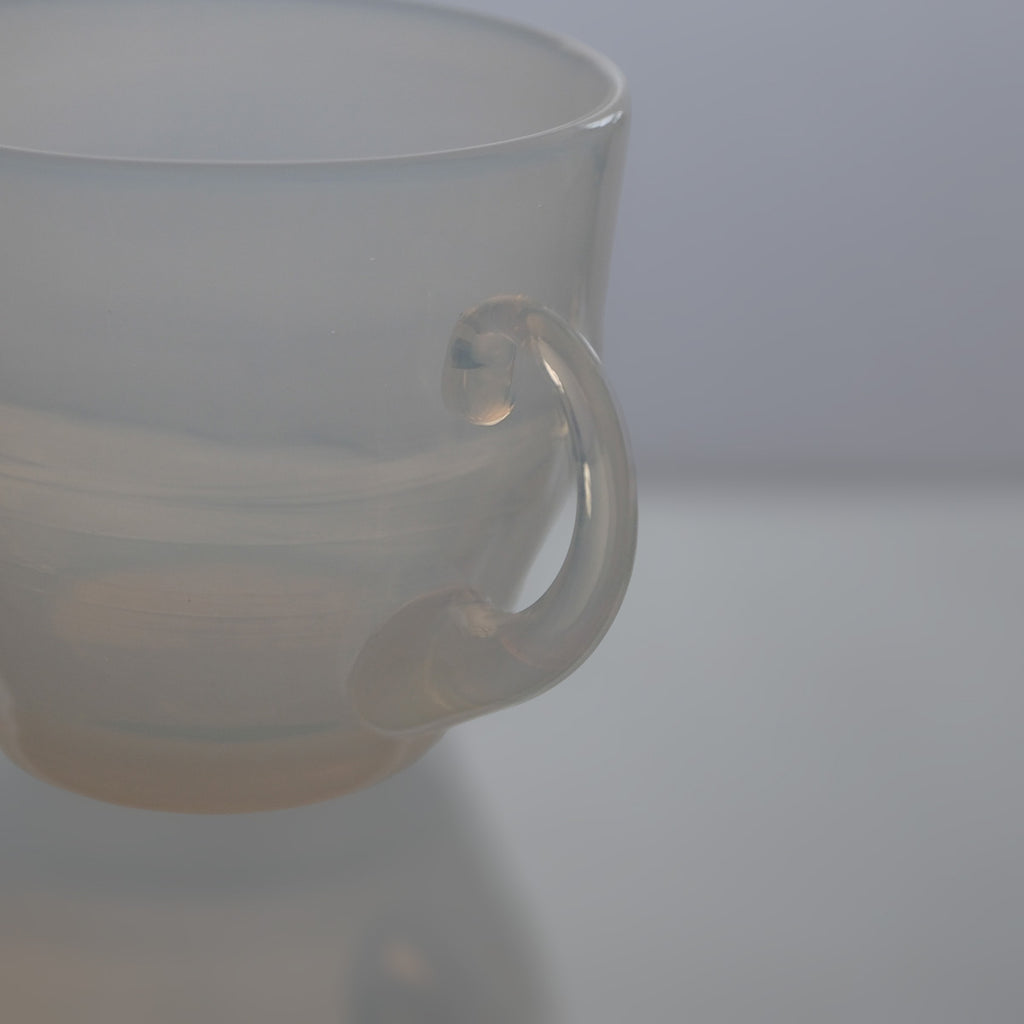 とろんとした吹きガラスの質感とともに、立ちのぼる湯気や乳白色のガラス越しの景色も愉しんでいただけます。