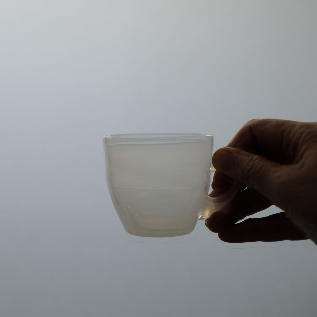 また、自身で硝子の原料を調合し、吹きガラスながら温度変化に耐えうる耐熱の器を製作されており、こちらのHot Cupも耐熱ガラス。