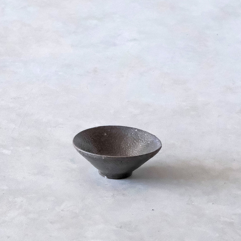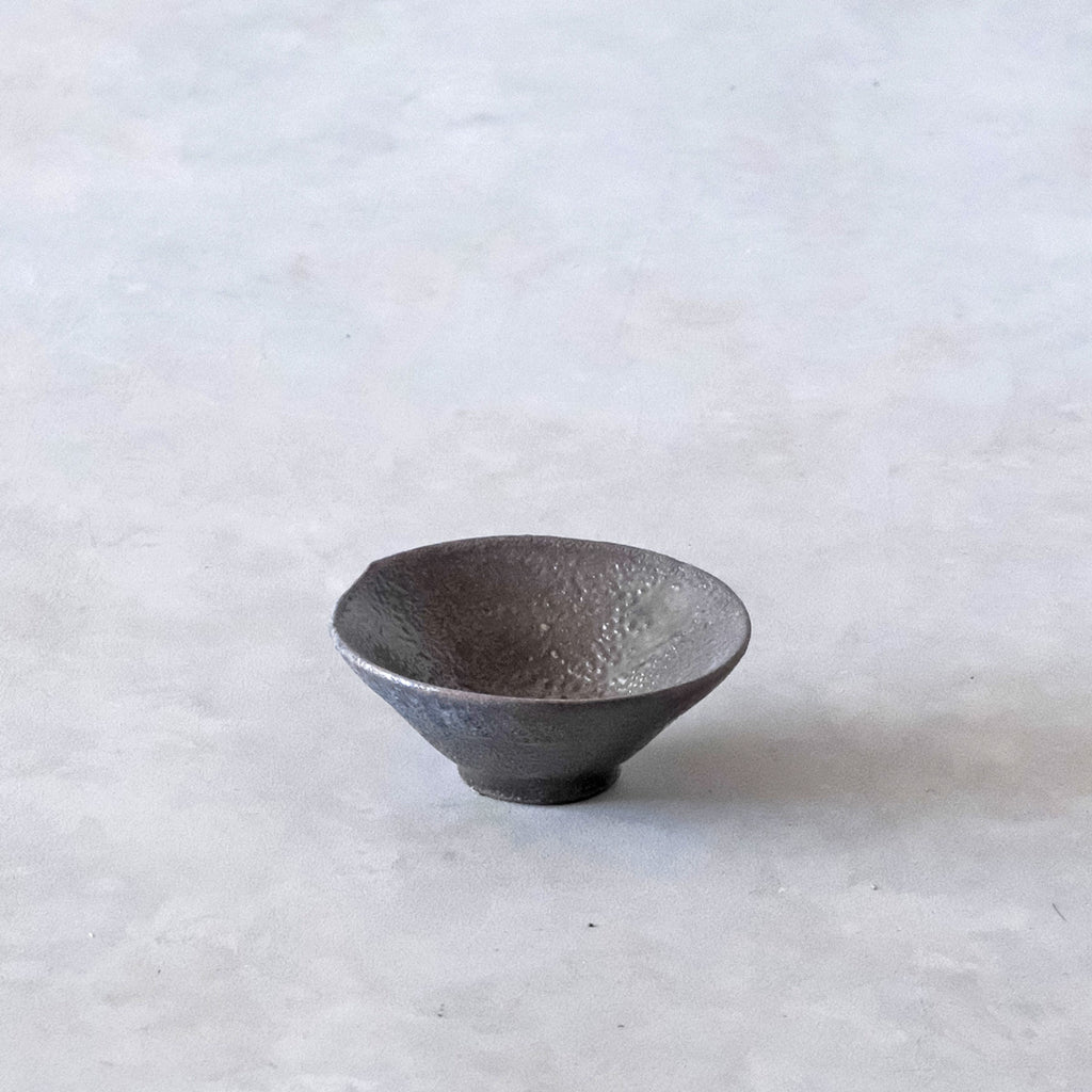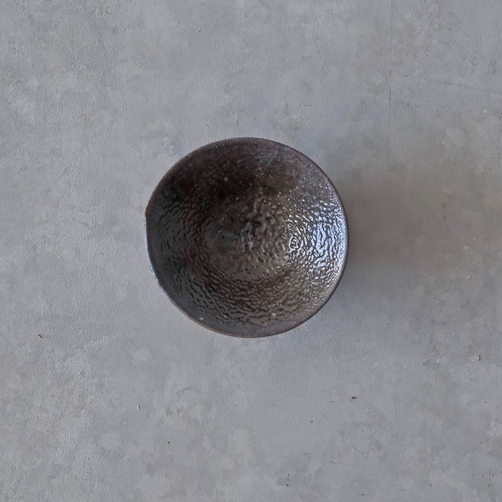青磁と同じ釉をかけて穴窯で焼成した深みある色合いのぐいのみ。