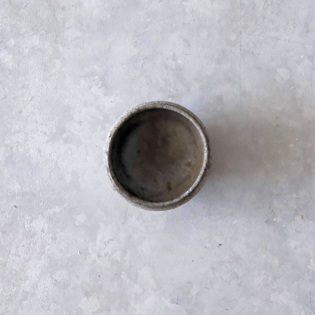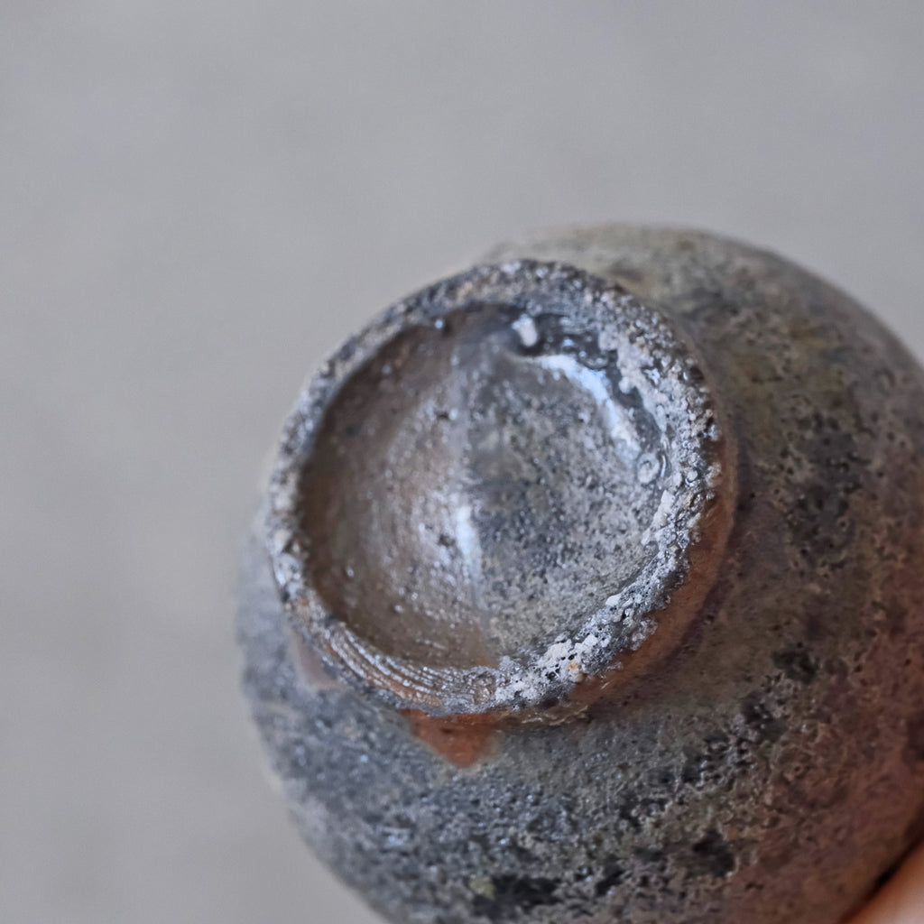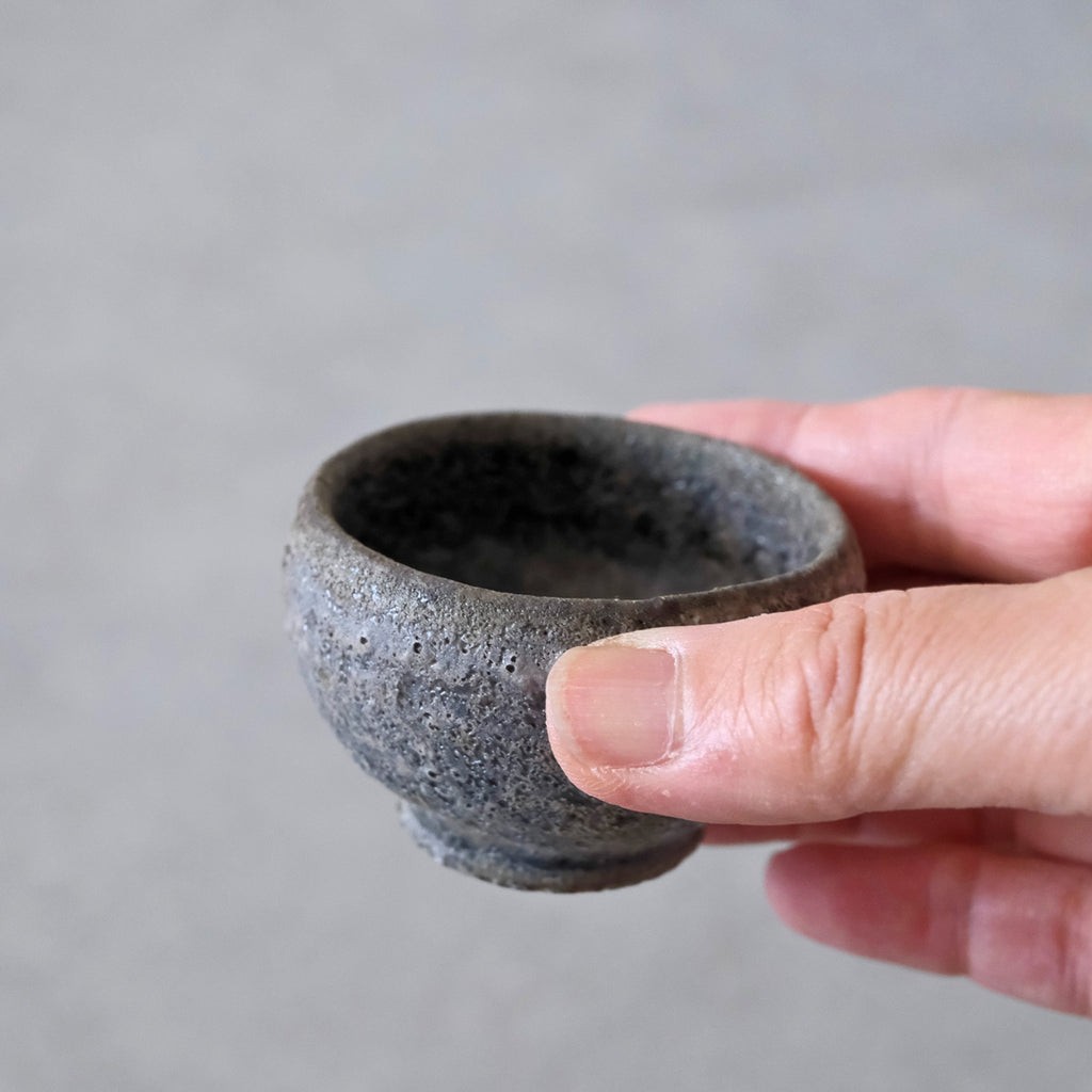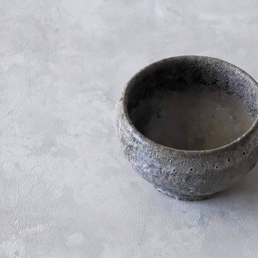 青磁と同じ釉をかけて穴窯で焼成した深みある色合いのぐいのみ。