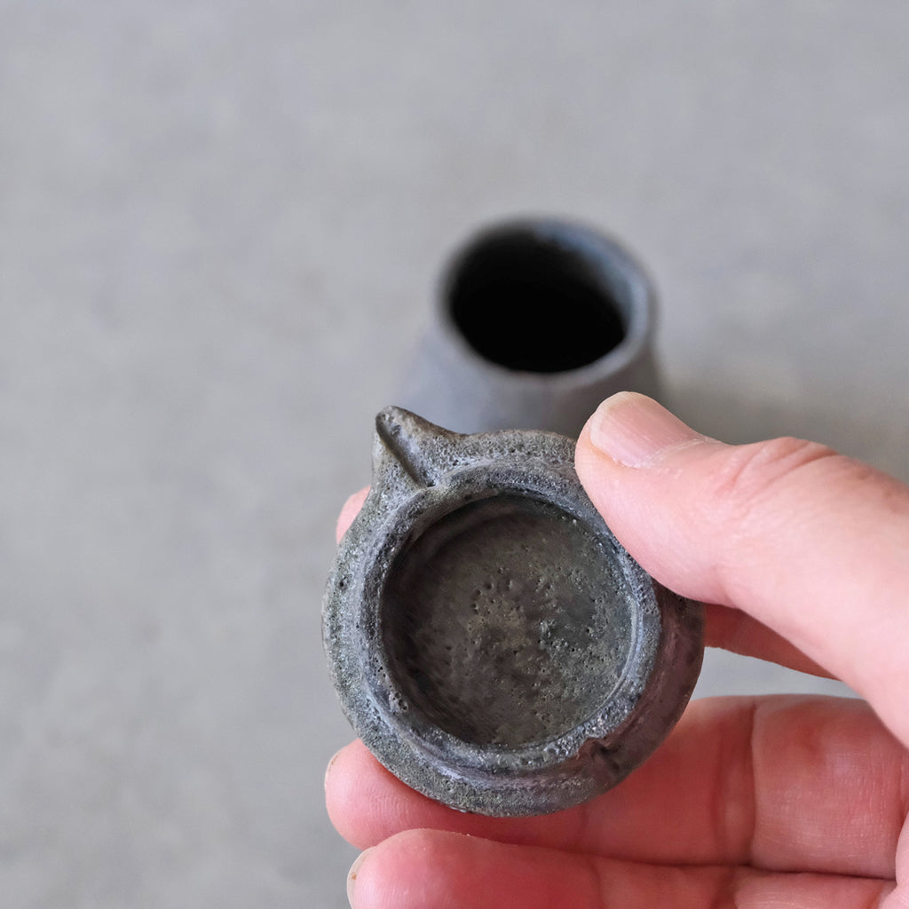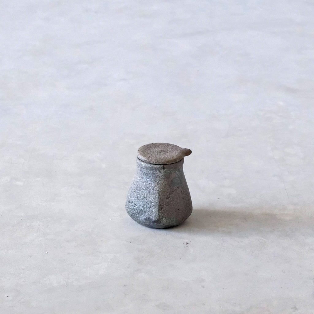 青磁と同じ釉をかけて穴窯で焼成した表情豊かな醤油差し