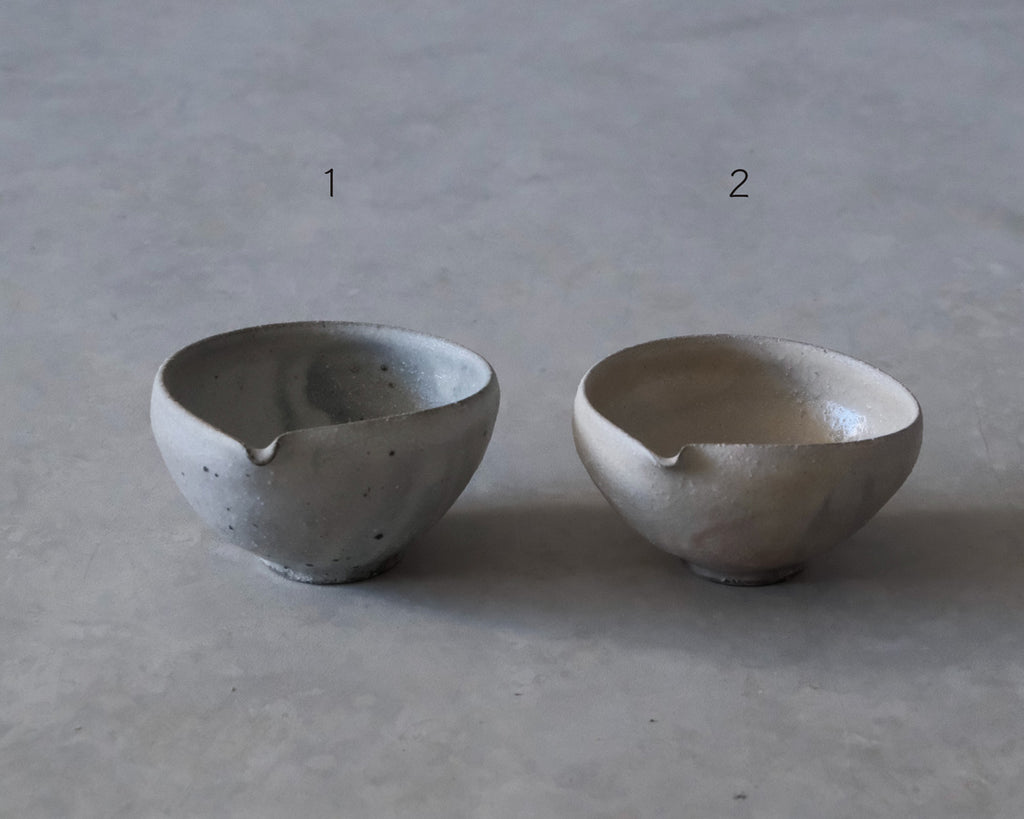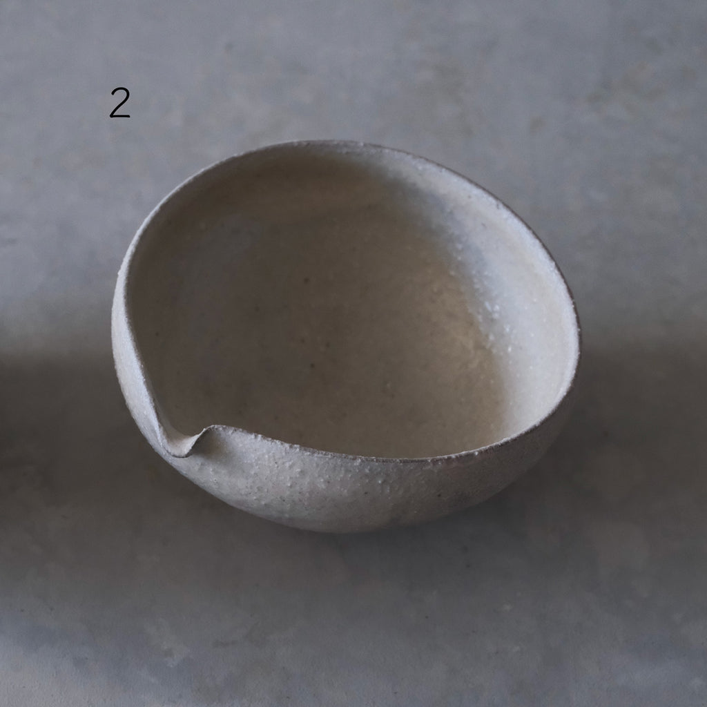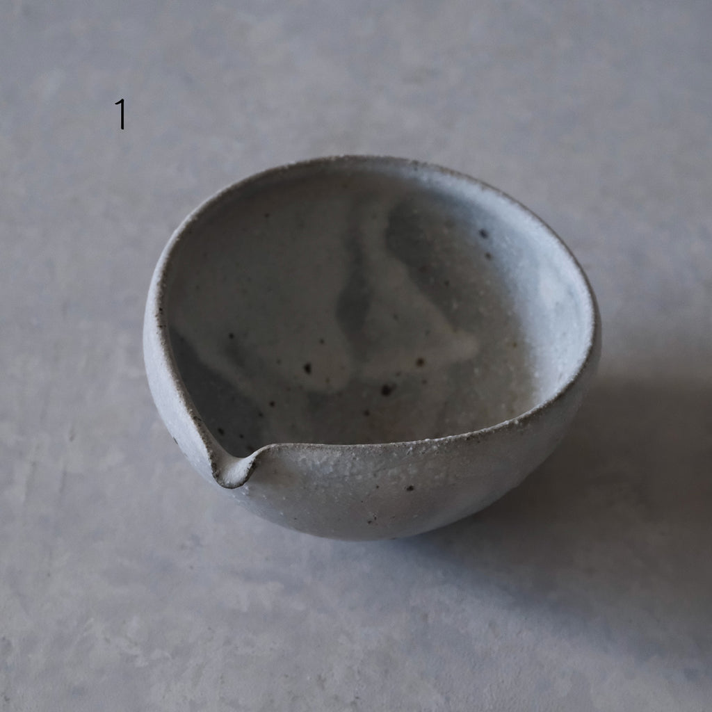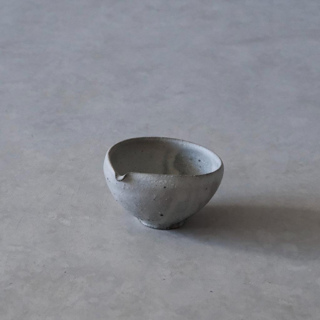 結晶のような細かな粒子がきらりと輝く粉引の片口