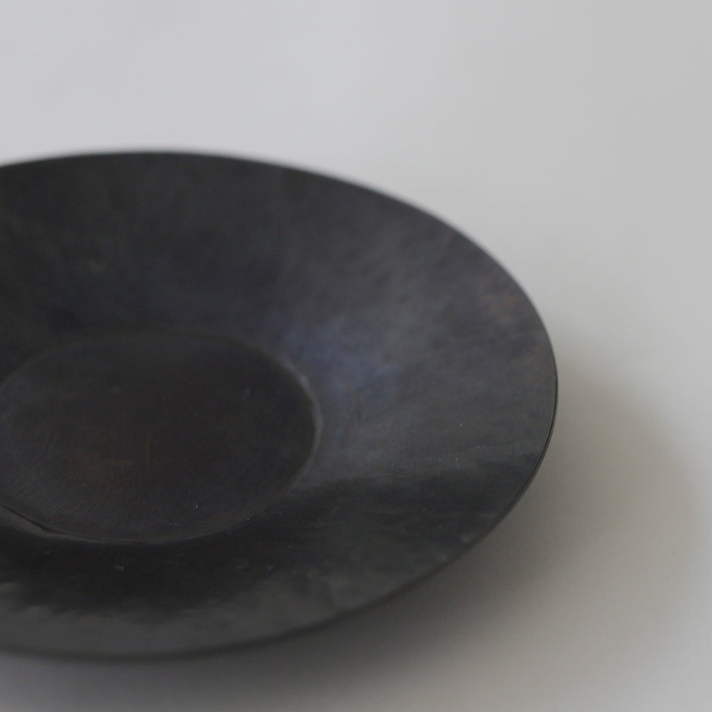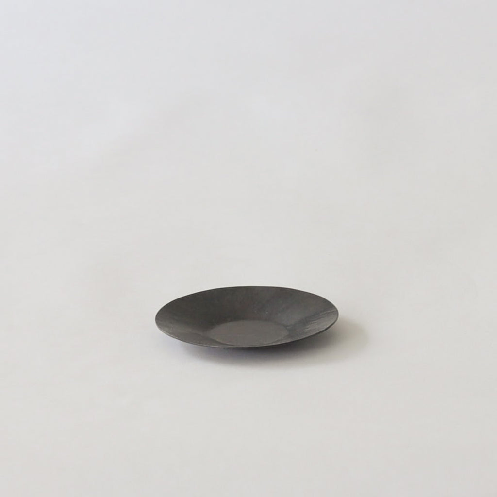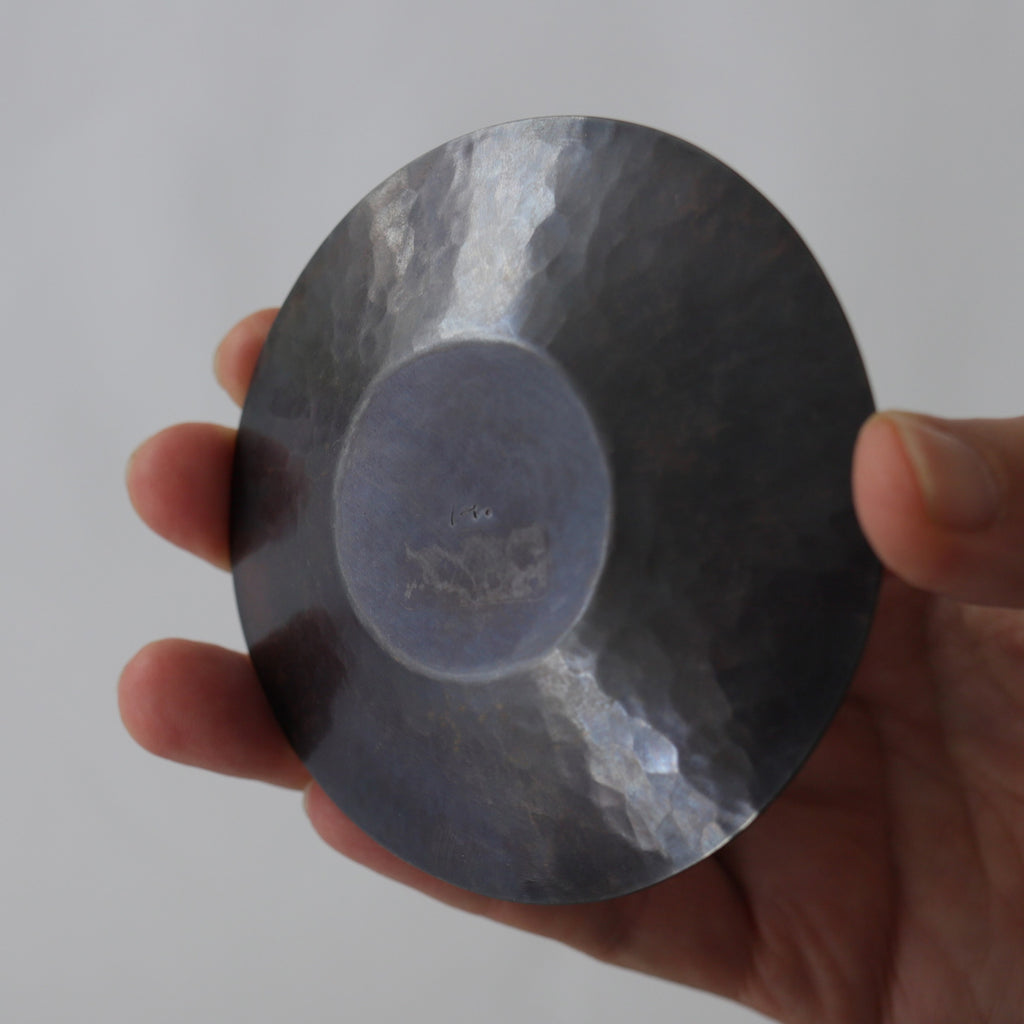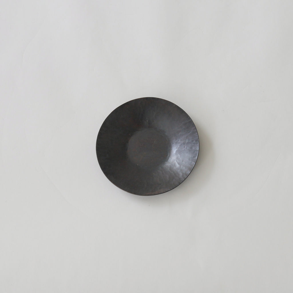 銅に硫化着色を施こされた茶托。時を経た銅の色味のよう。
