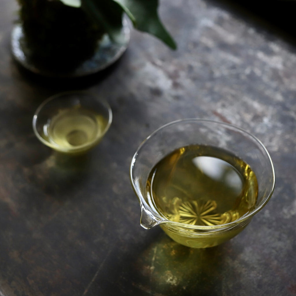 ほんのり色づく中国緑茶も、一人楽しむお酒や色の綺麗なリキュールも・・・。