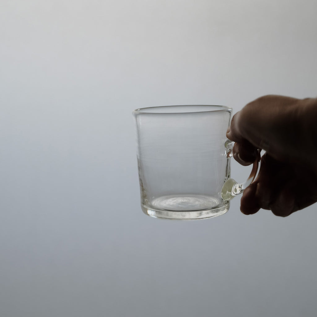 くるんと付けられたガラスの取っ手や揺らぎあるガラスの表情は手仕事の温かみを感じます。