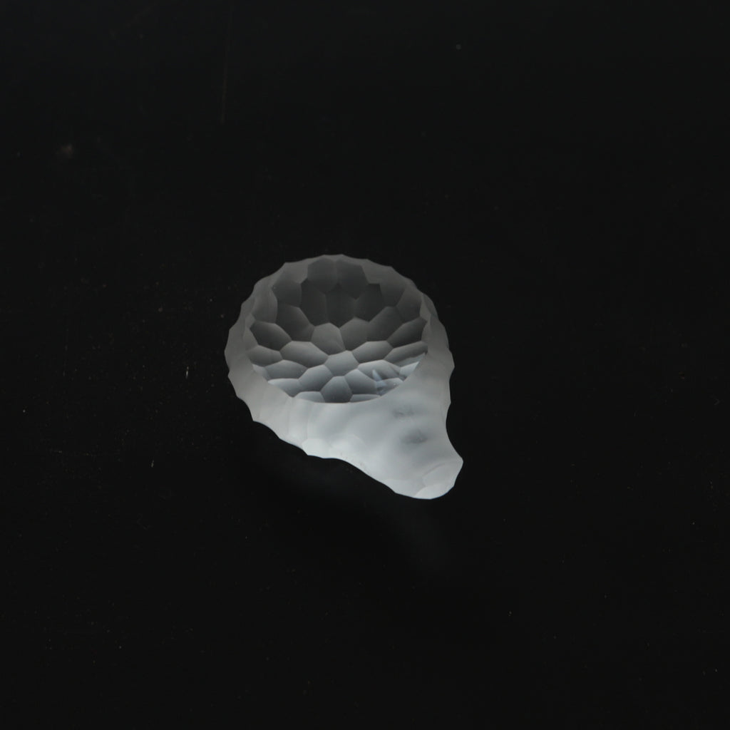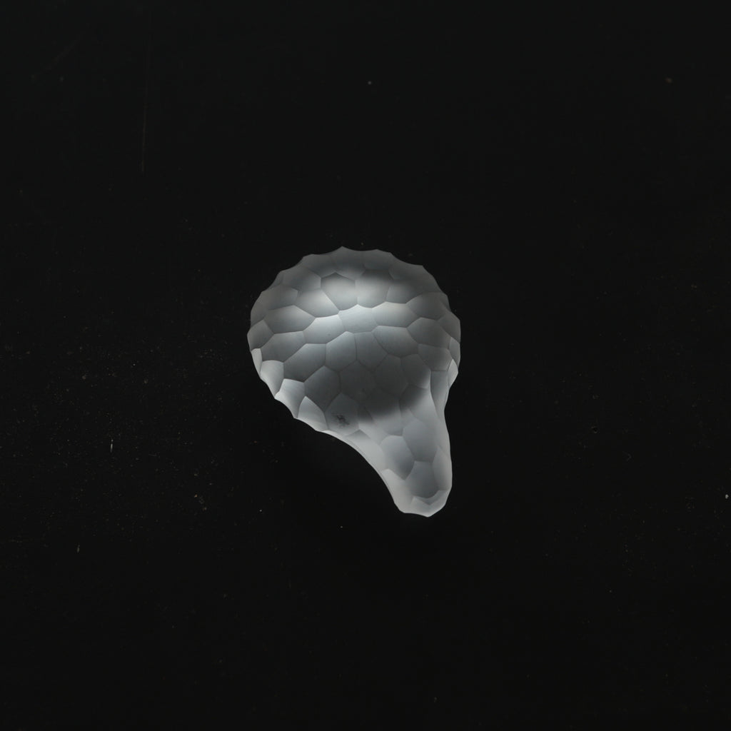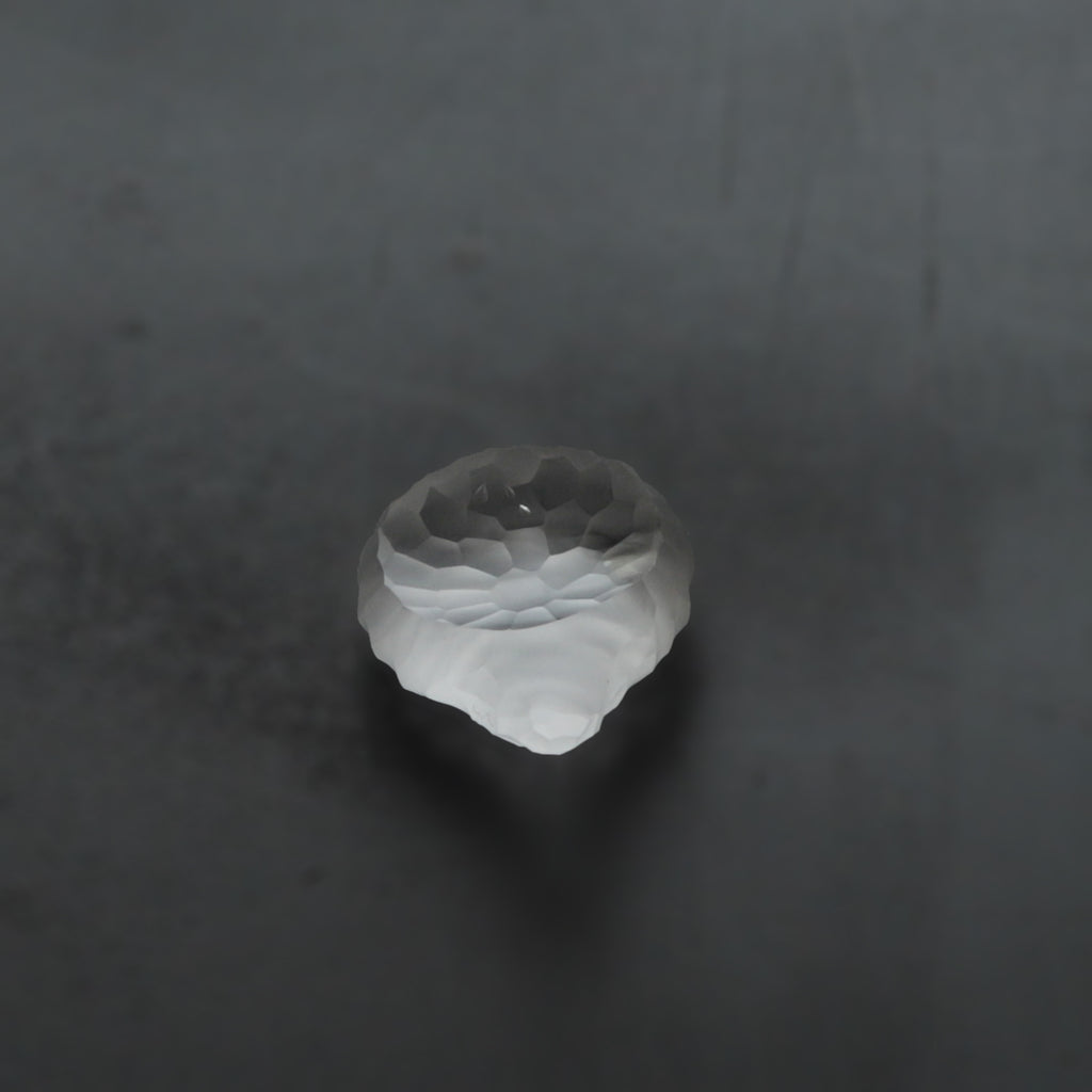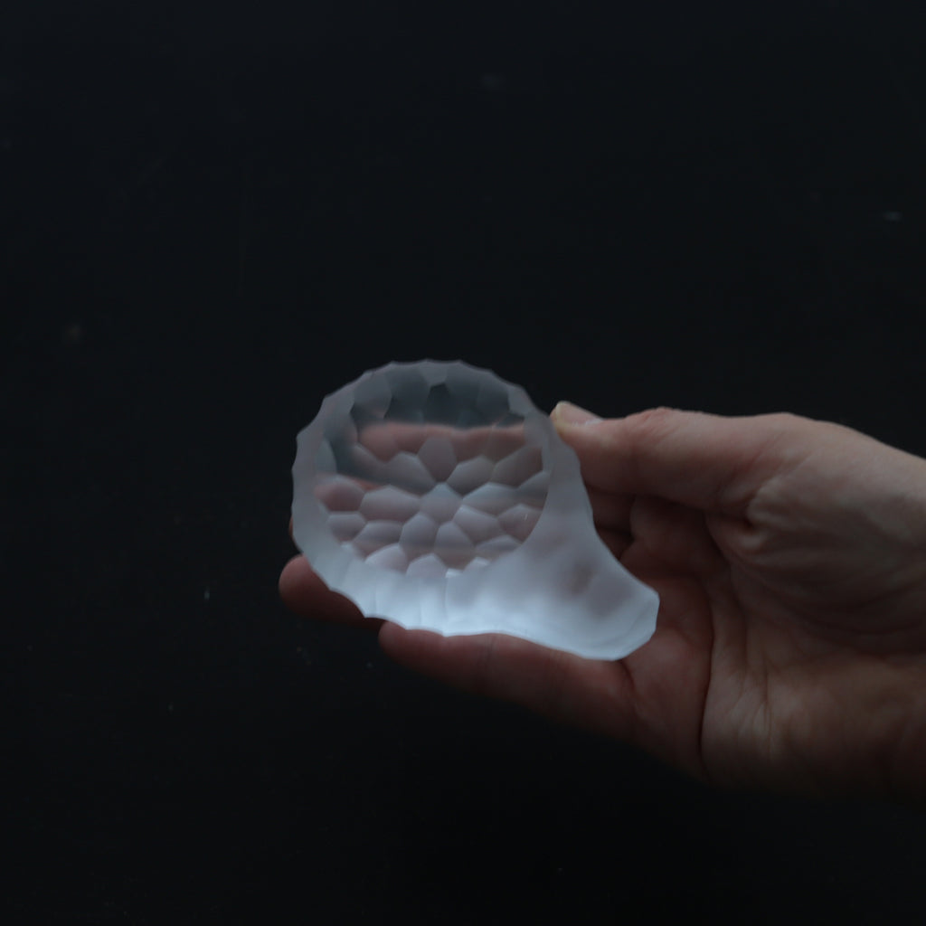 自身で制作した硝子に、切子と同じような手法でさまざまな削紋を施す。