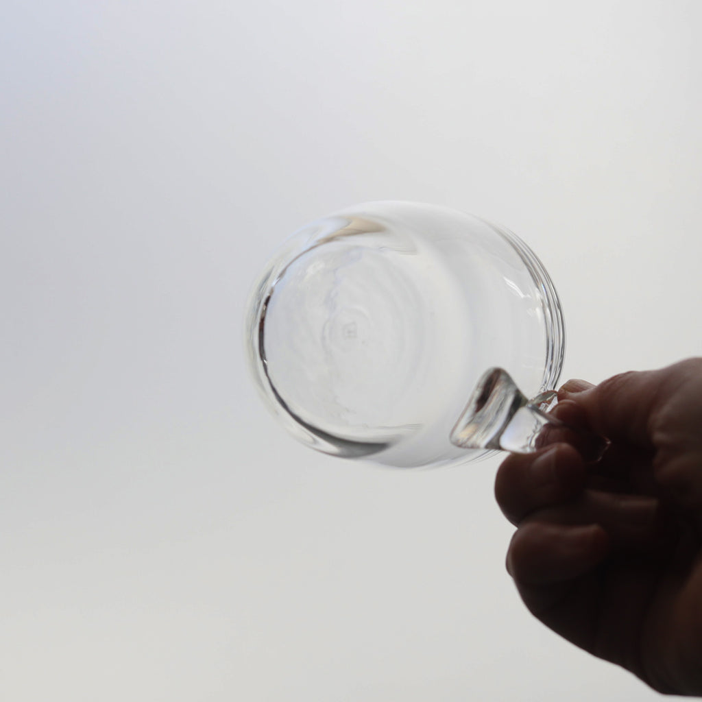 くるんと付けられたガラスの取っ手や揺らぎあるガラスの表情は手仕事の温かみを感じます。