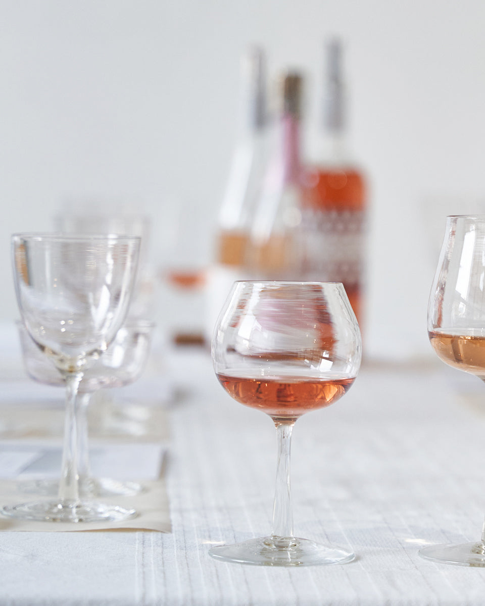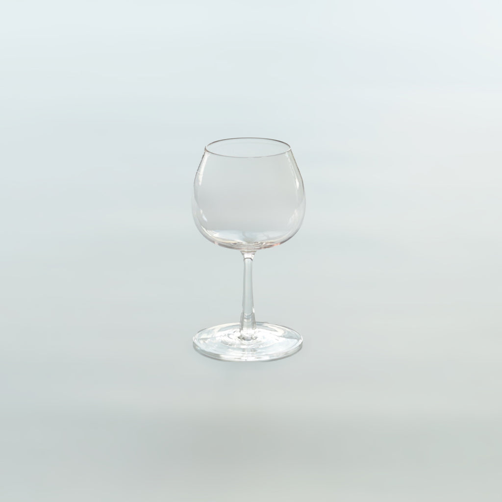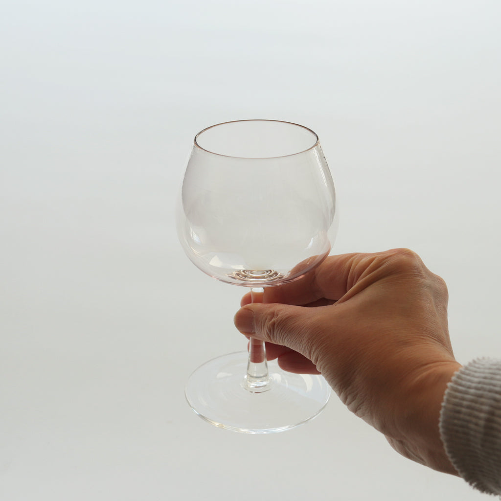 香りを楽しむためにふっくらと底は膨らみ、口縁はすぼんだワイングラス。