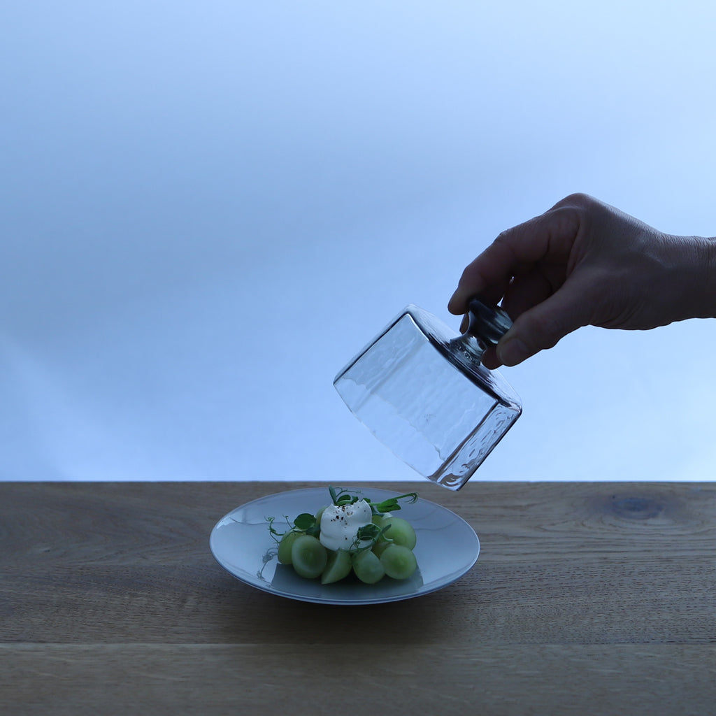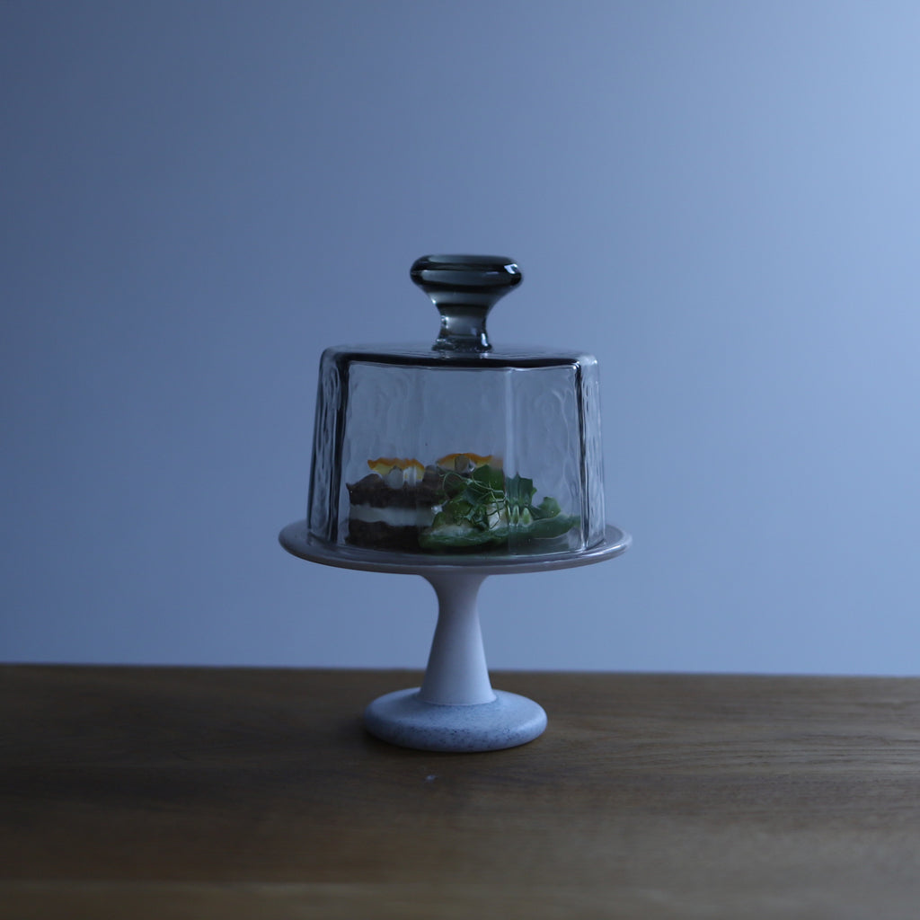 型吹きによるゆらぎある表情が愉しめるグレーの小さなガラスドーム