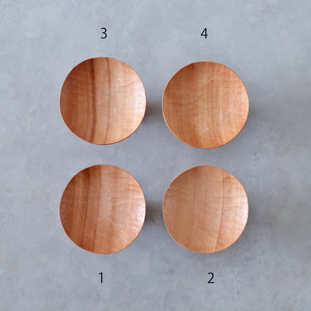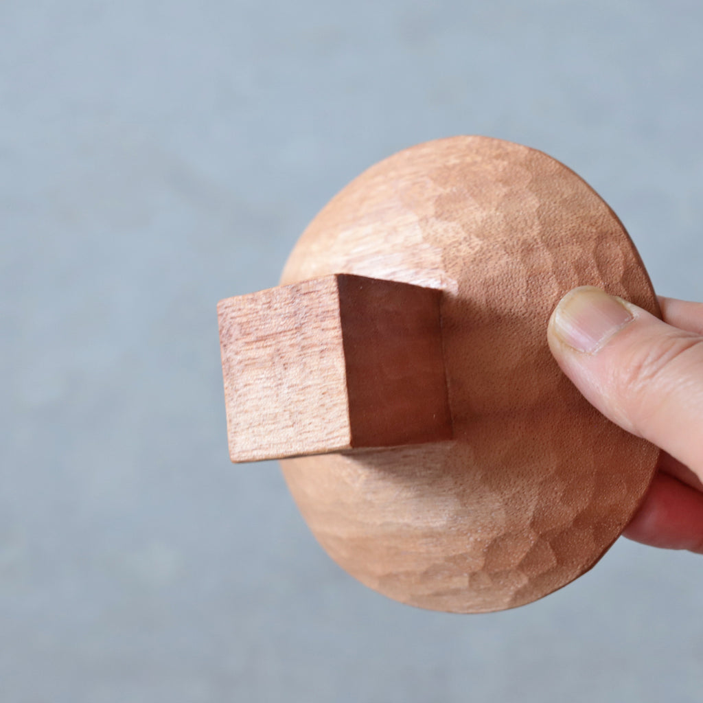 温かみのある木肌と削り跡の表情に、心和みます。