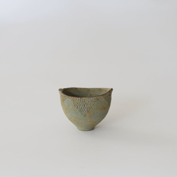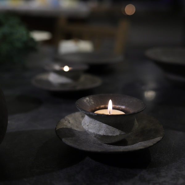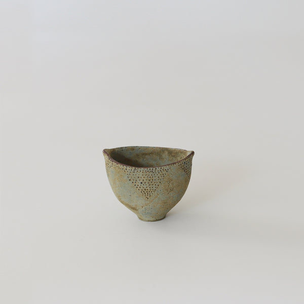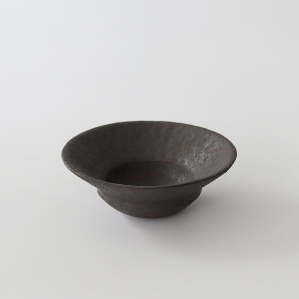 指先でかたちを作っているからかうつわのフォルムは丸みがあり、どこか愛嬌があります。そして、かすかに残る手あとや深みある質感の陰影ある表情。