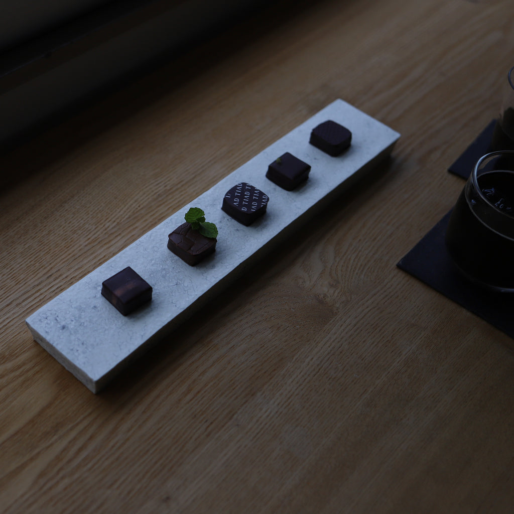 化粧土の白と素地の黒が織りなす表情が愉しめる長台皿。