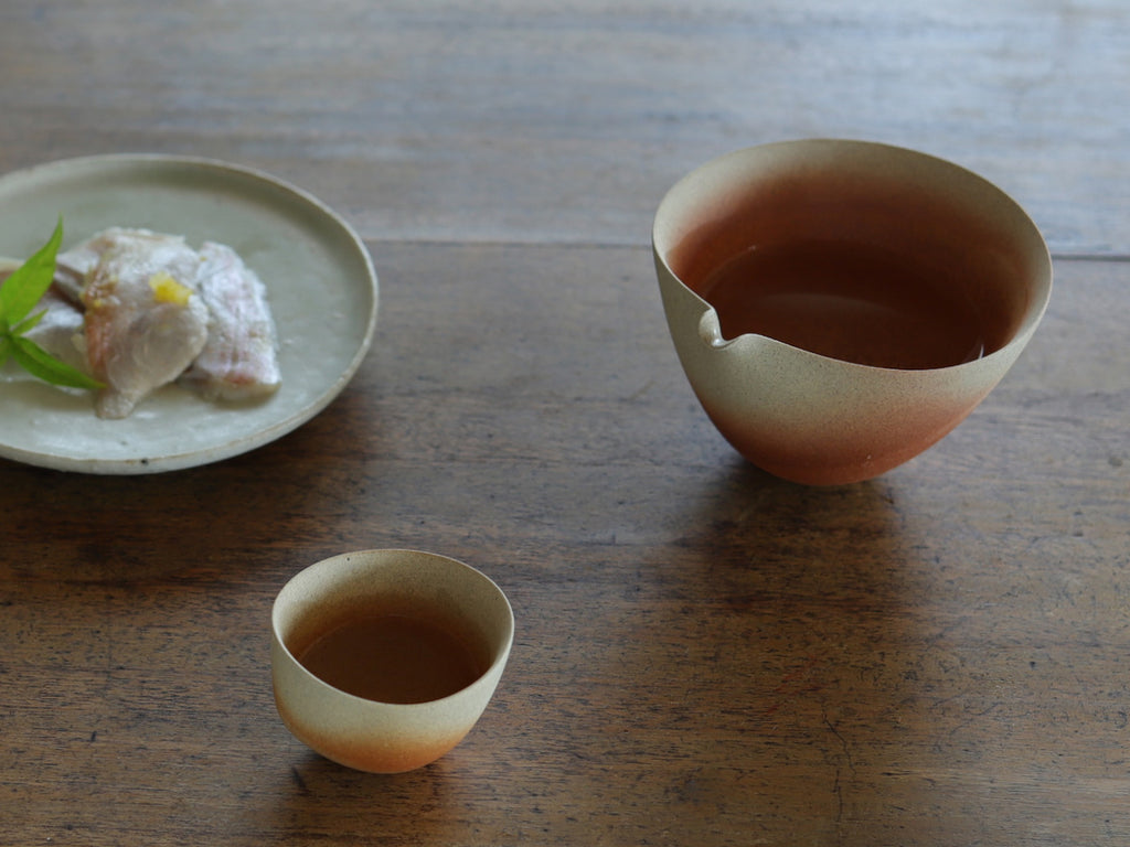きめ細かな質感と緋色が織りなす表情が美しい片口。