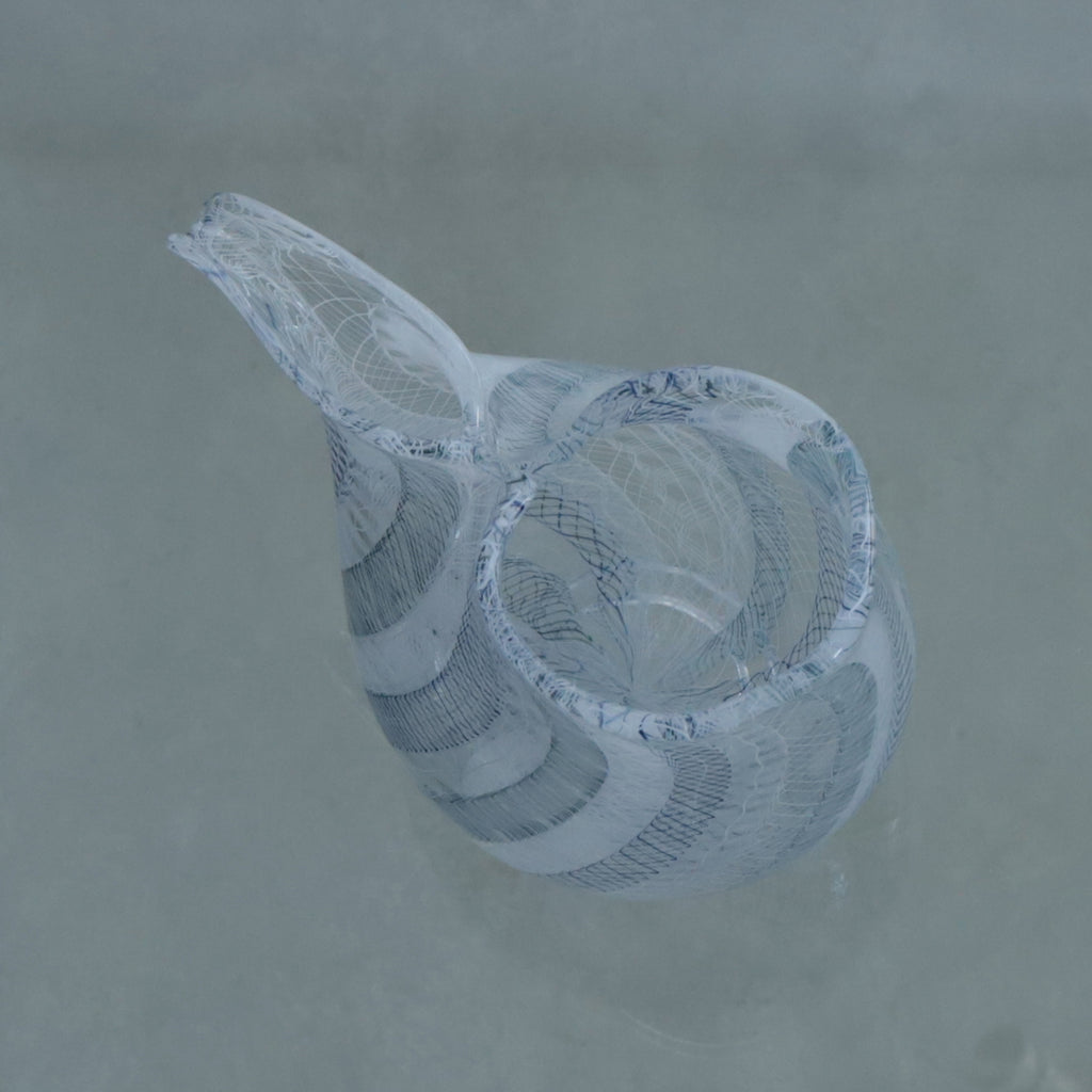 レースの模様の入ったガラス棒を並べて、竿に巻き取ることから始めるというその制作はとても難易度の高い技法だとか。