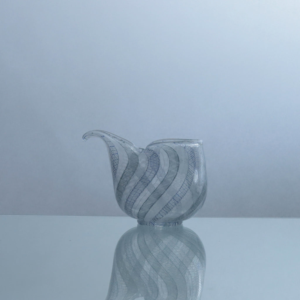 青と白の美しいレース模様をまとった特別感ある片口の懐古的な世界観に浸りつつ