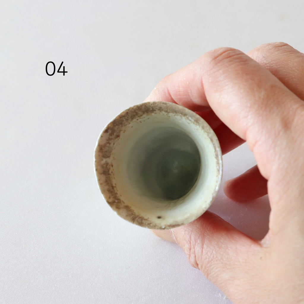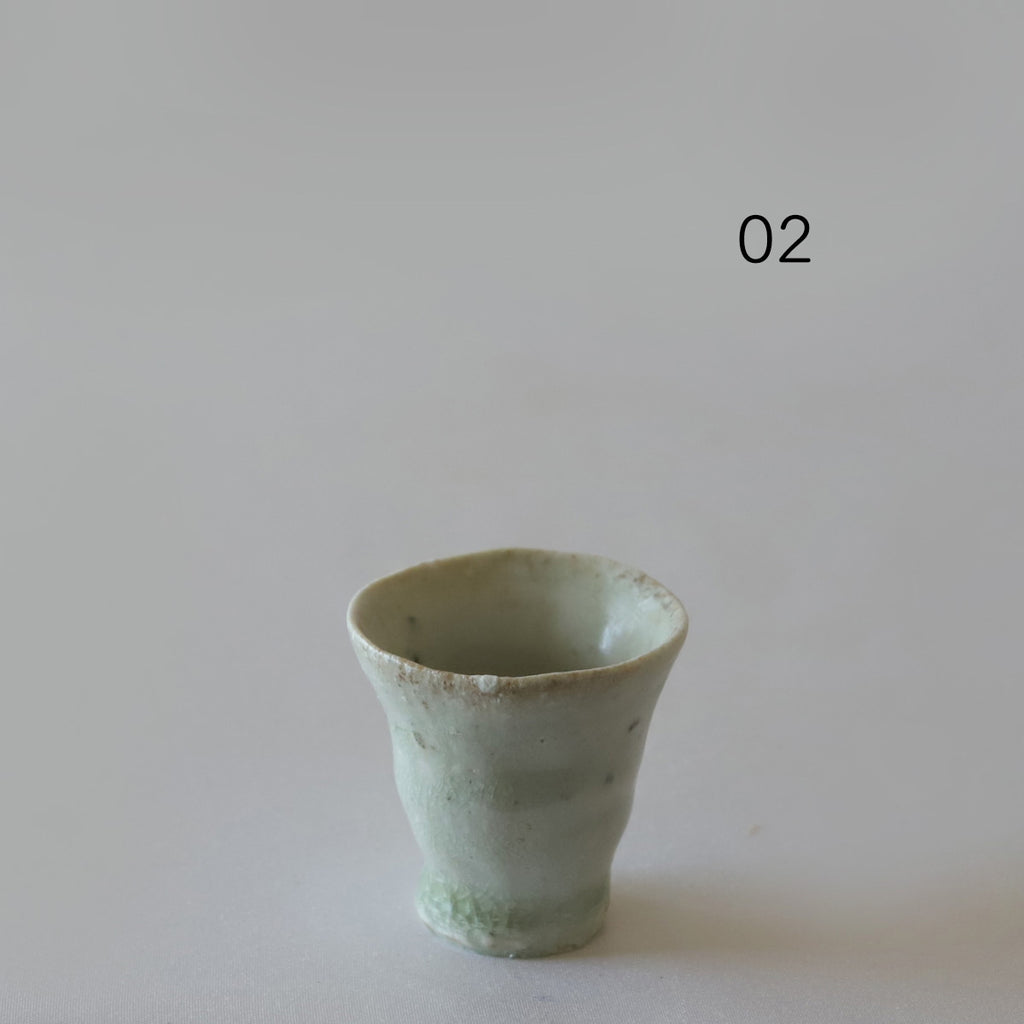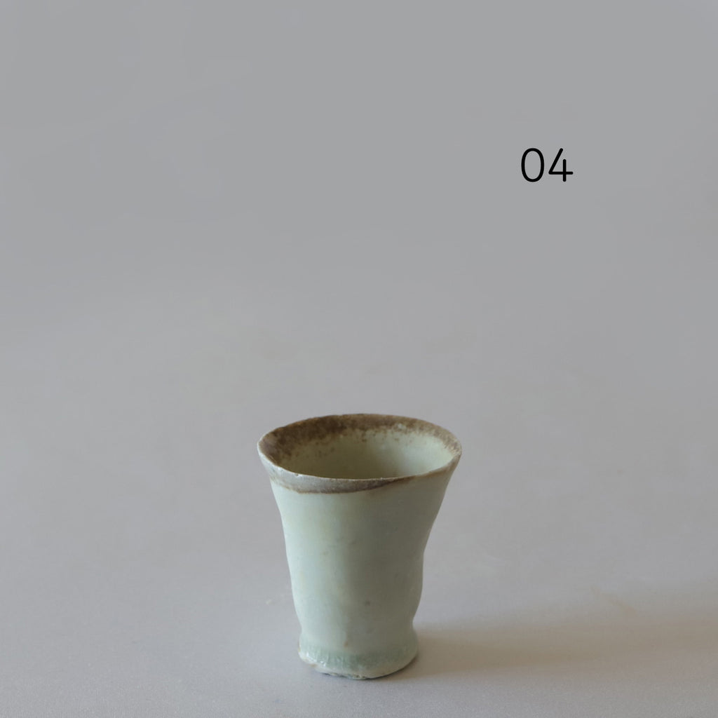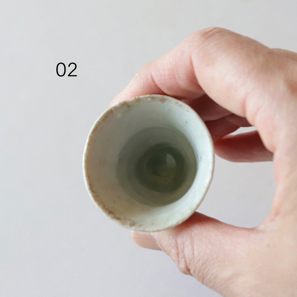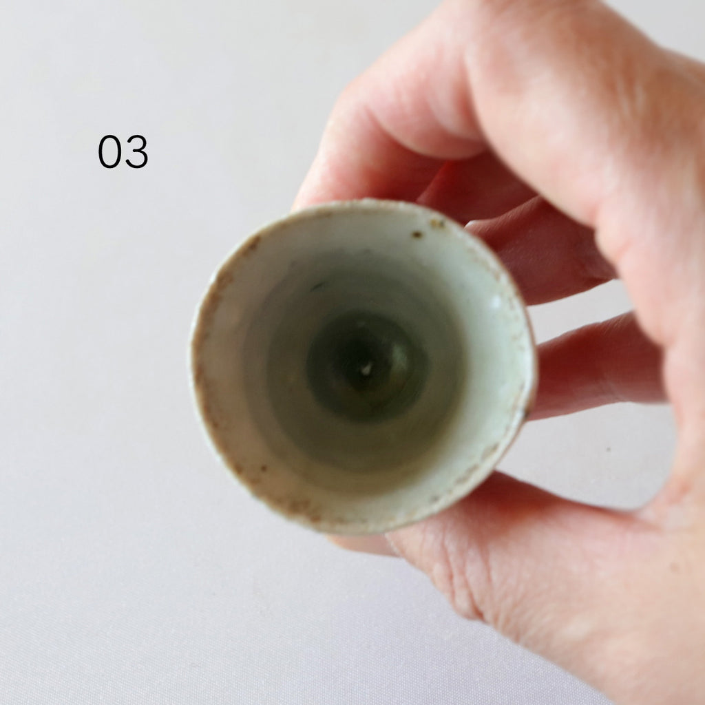 磁器土に化粧土を重ね、灰釉を掛けて薪窯で焼成された杯。