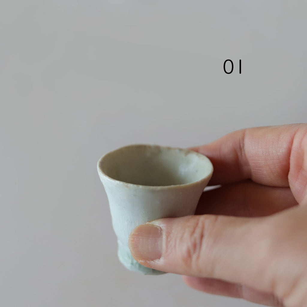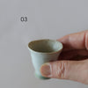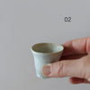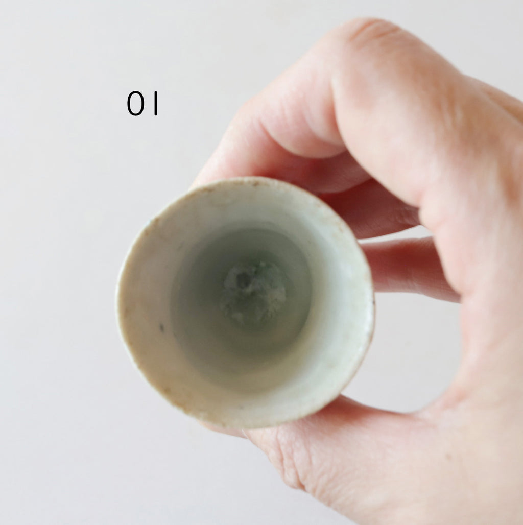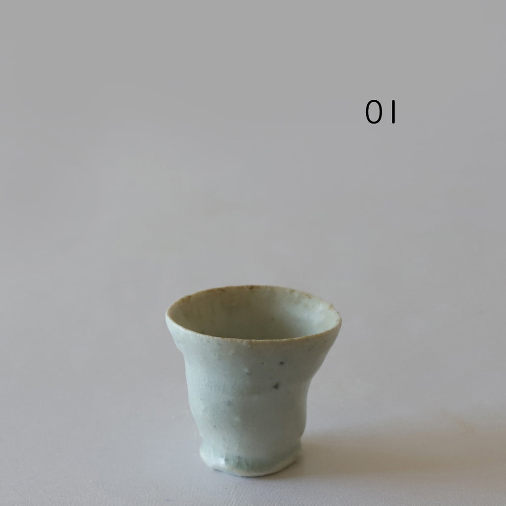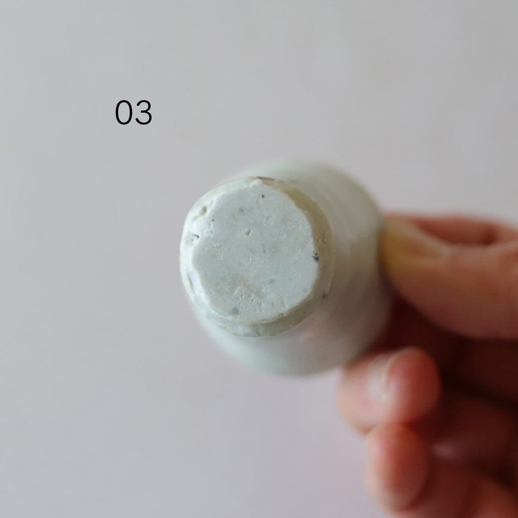 磁器土に化粧土を重ね、灰釉を掛けて薪窯で焼成された杯。