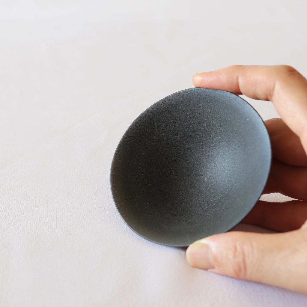 ベルベットのようなきめ細かな質感の黒のさかずき。
